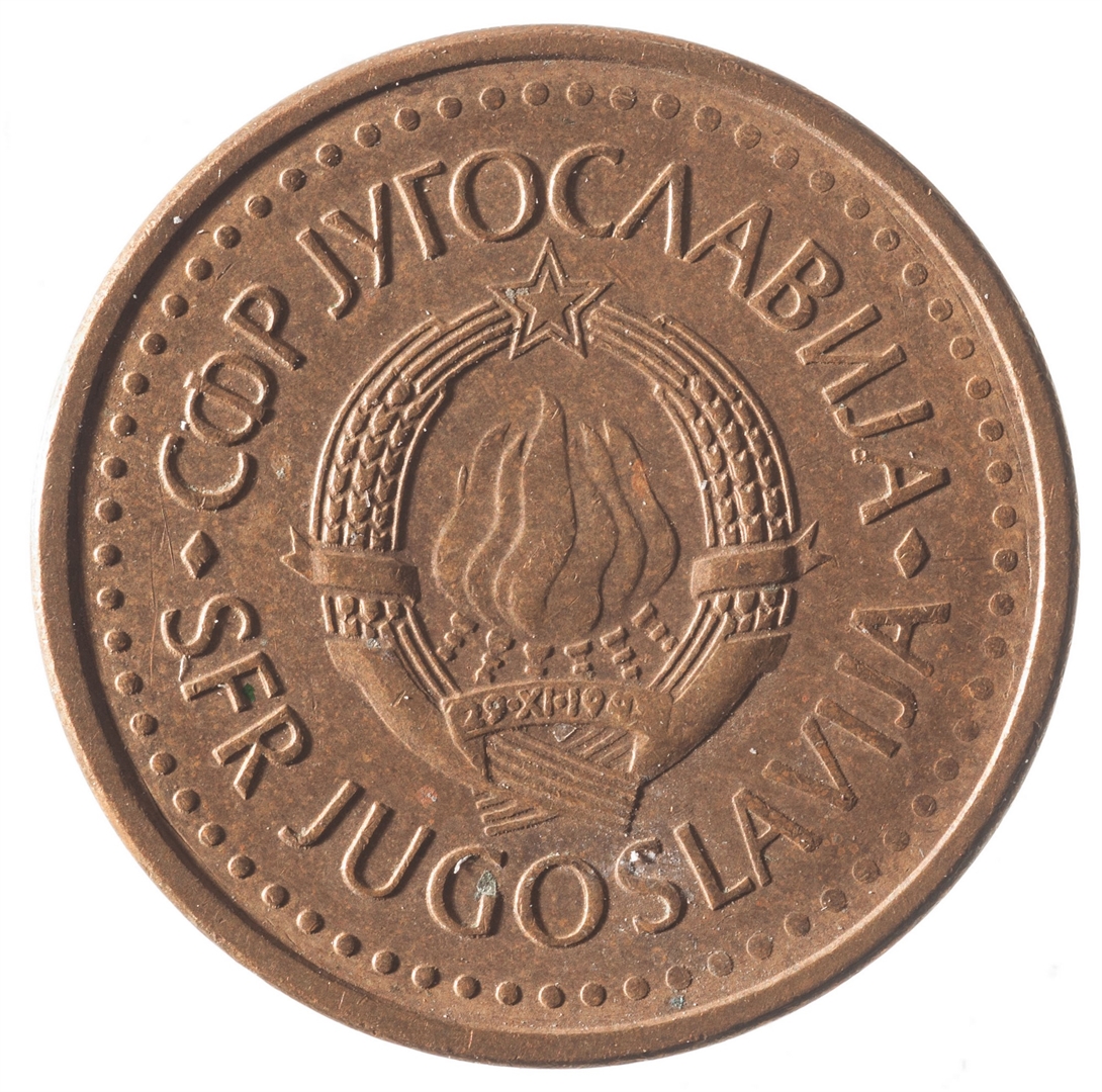 U sredini državni grb. U oko njega uz rub polukružno napisan tekst SFR JUGOSLAVIJA na latinici i ćirilici.