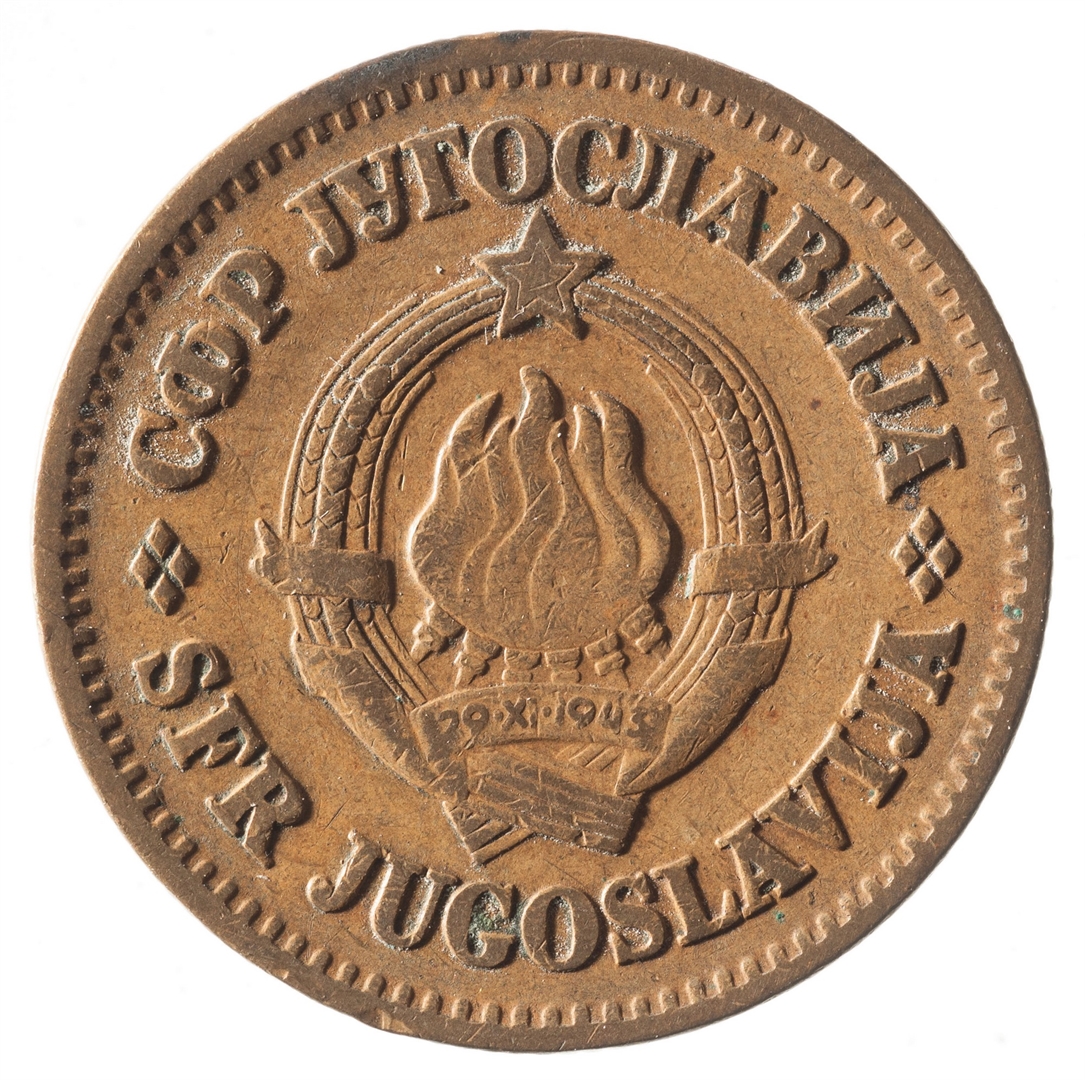 U sredini državni grb. U gornjem djelu uz rub polukružno napisan tekst SFR JUGOSLAVIJA na latinici i ćirilici.