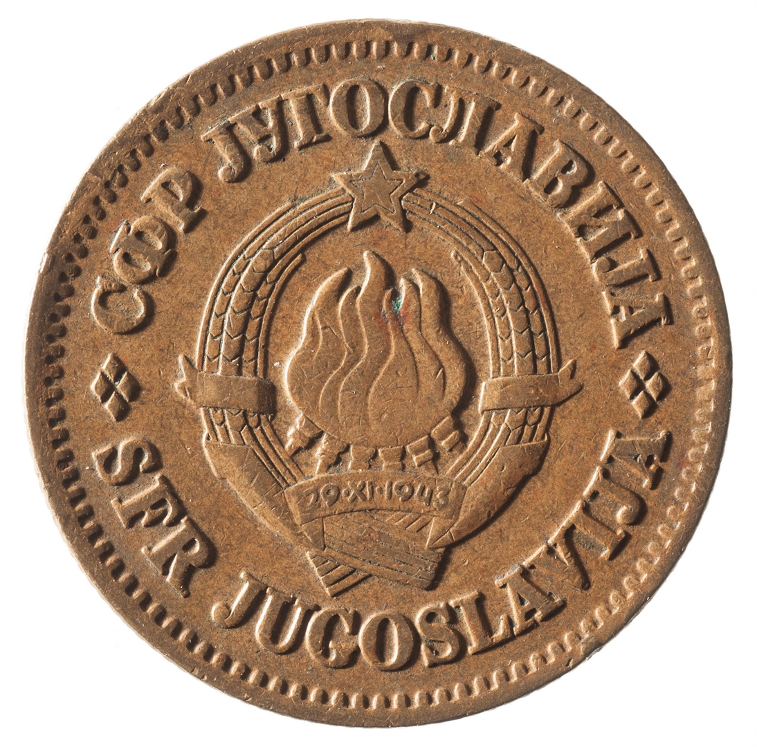 U sredini državni grb. U gornjem djelu uz rub polukružno napisan tekst SFR JUGOSLAVIJA na latinici i ćirilici.