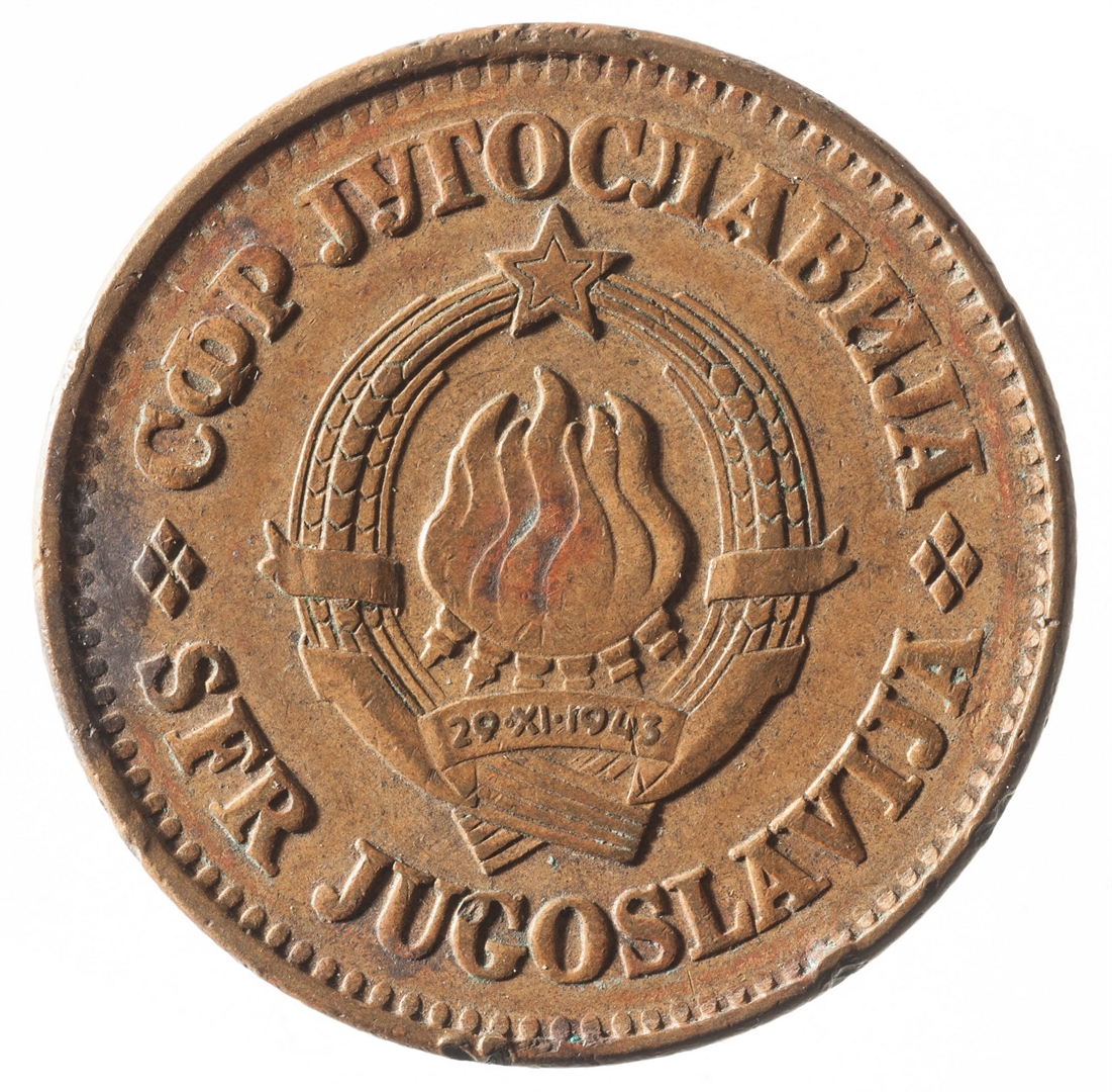 U sredini državni grb. U gornjem djelu uz rub polukružno napisan tekst SFR JUGOSLAVIJA na latinici i ćirilici.
