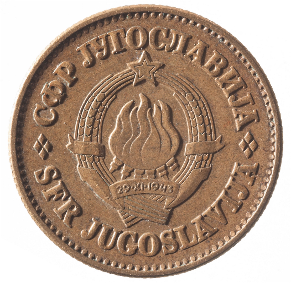 U sredini državni grb. U gornjem djelu uz rub polukružno napisan tekst SFR JUGOSLAVIJA na latinici i ćirilici.