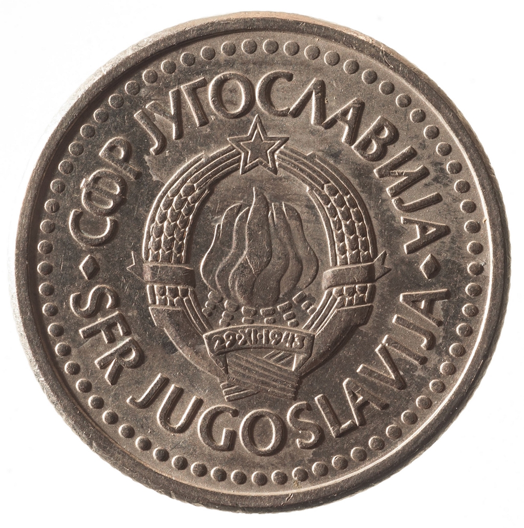 U sredini državni grb. U gornjem djelu uz rub polukružno napisan tekst SFR JUGOSLAVIJA na latinici i ćirilici.
