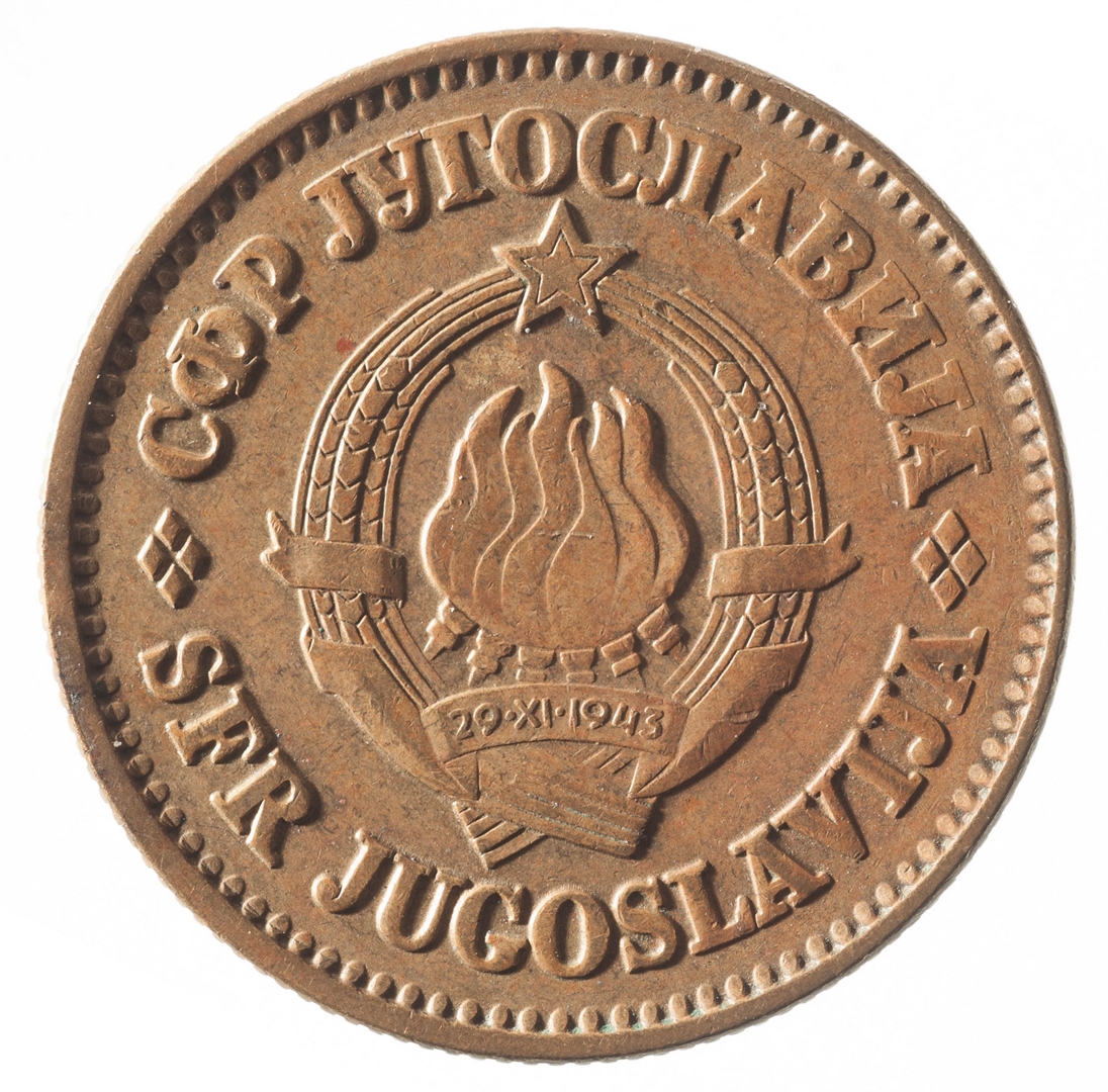 U sredini državni grb. U gornjem djelu uz rub polukružno napisan tekst SFR JUGOSLAVIJA na latinici i ćirilici.