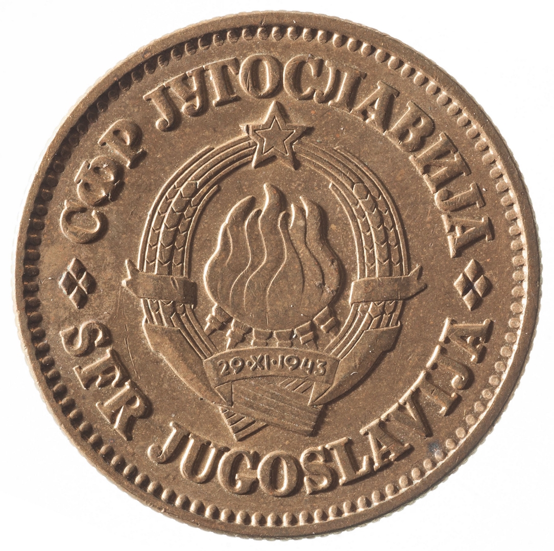 U sredini državni grb. U gornjem djelu uz rub polukružno napisan tekst SFR JUGOSLAVIJA na latinici i ćirilici.