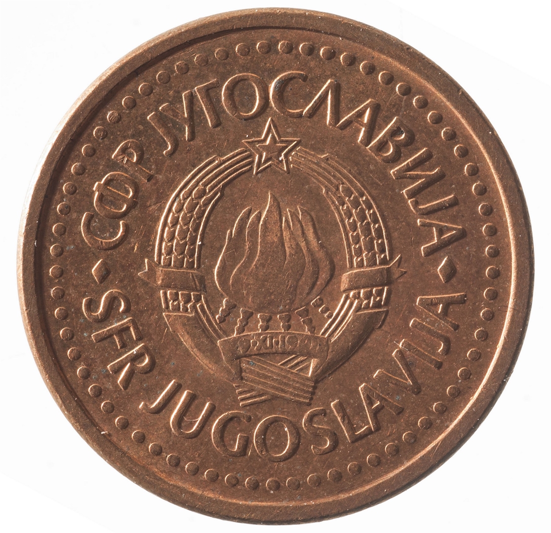 U sredini državni grb. U oko njega uz rub polukružno napisan tekst SFR JUGOSLAVIJA na latinici i ćirilici.