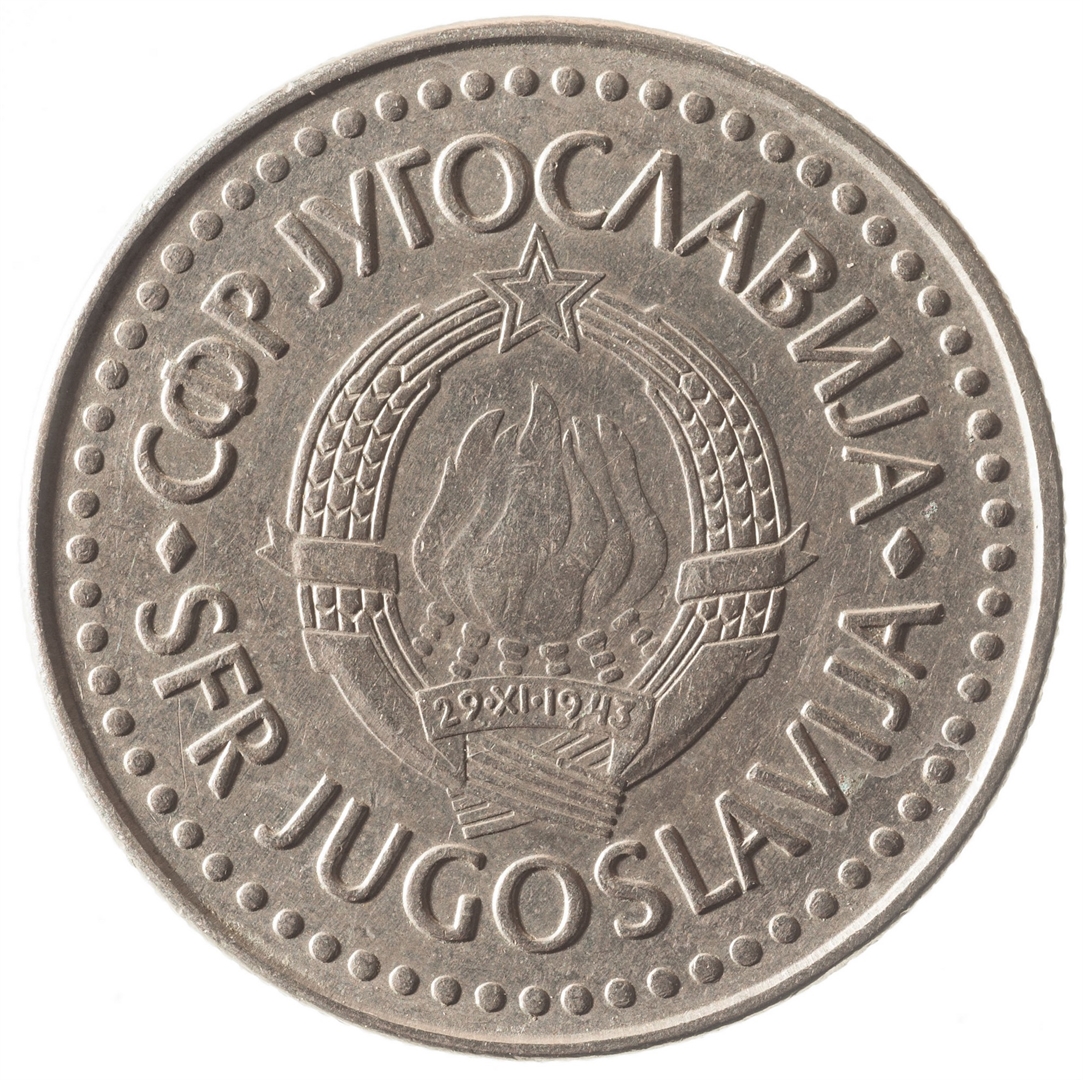 Avers: U sredini državni grb. Oko njega uz rub polukružno napisan tekst SFR JUGOSLAVIJA na latinici i ćirilici. Revers: U sredini broj 100 (nominala), oko njega tekst DINAR na četiri jezika, a ispod toga godina 1986.
