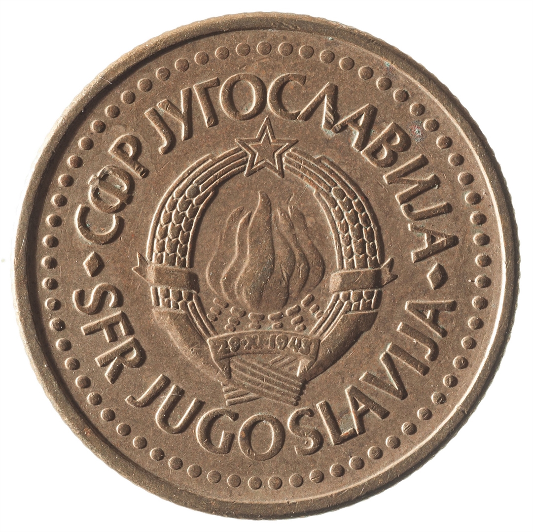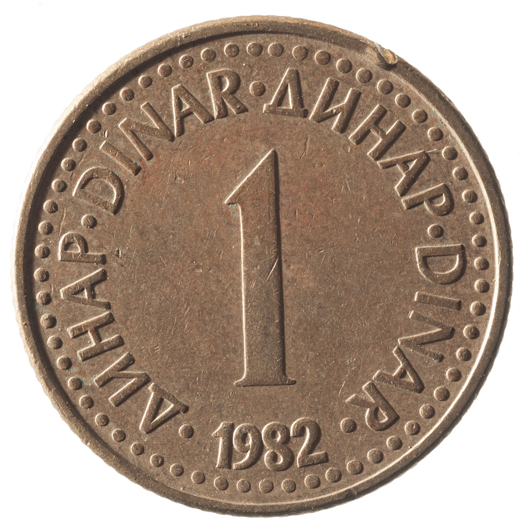Avers: U sredini državni grb. U gornjem djelu uz rub polukružno napisan tekst SFR JUGOSLAVIJA na latinici i ćirilici. Revers: U sredini broj 1 (nominala), oko njega tekst DINAR na četiri jezika, a ispod toga godina 1982.