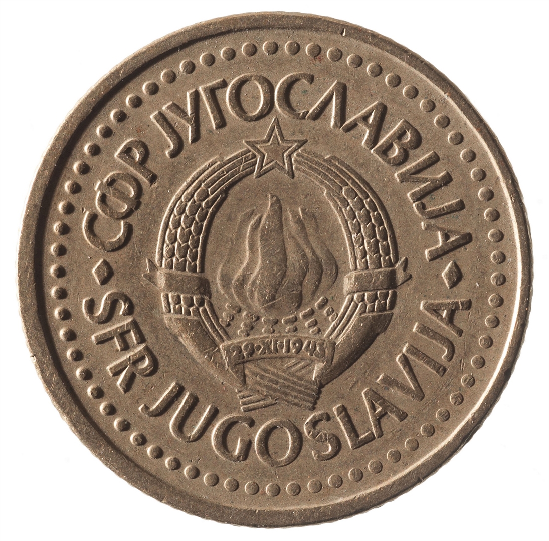 U sredini državni grb. U gornjem djelu uz rub polukružno napisan tekst SFR JUGOSLAVIJA na latinici i ćirilici.