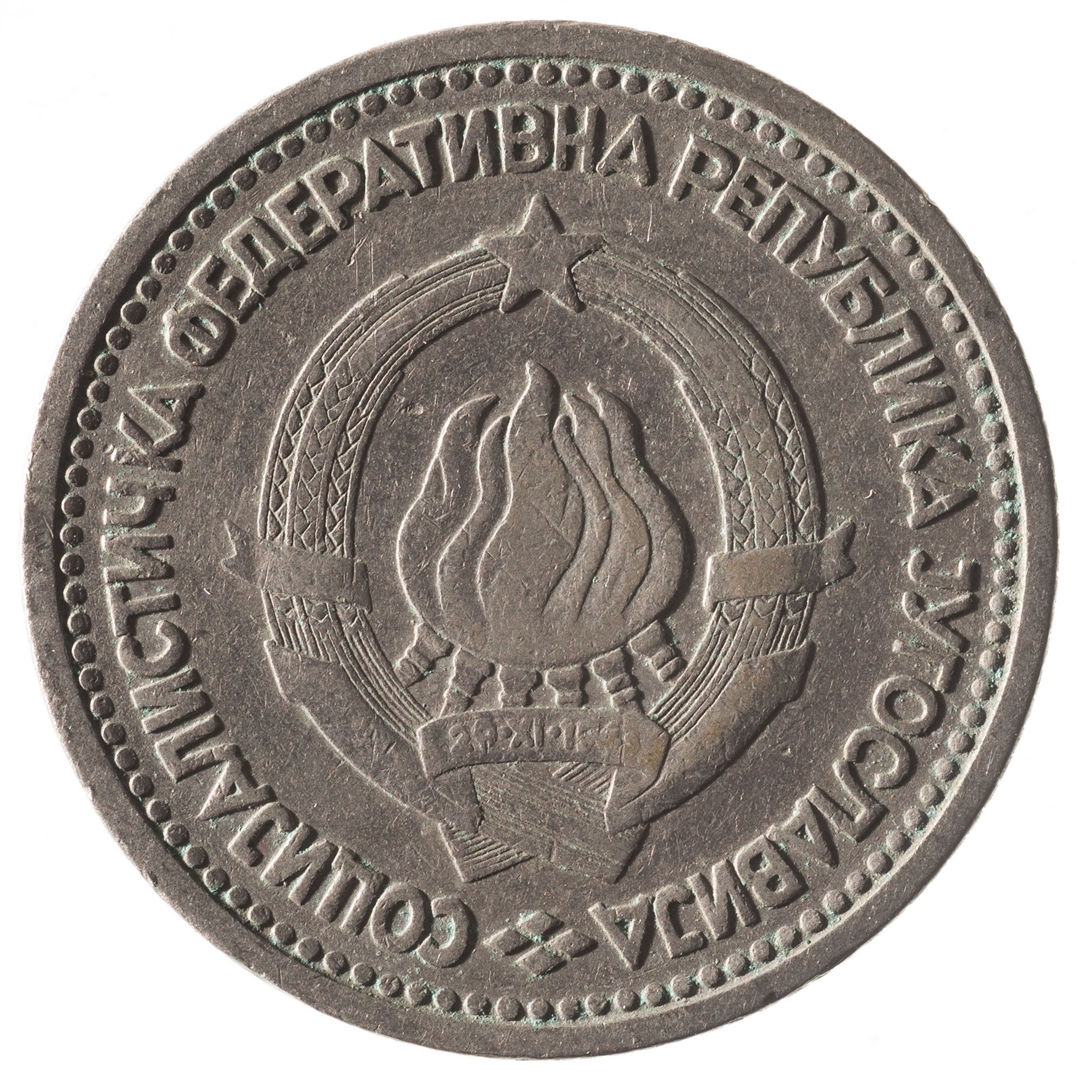 U sredini državni grb. U gornjem djelu uz rub polukružno napisan tekst SOCIJALISTIČKA FEDERATIVNA REPUBLIKA JUGOSLAVIJA na ćirilici.