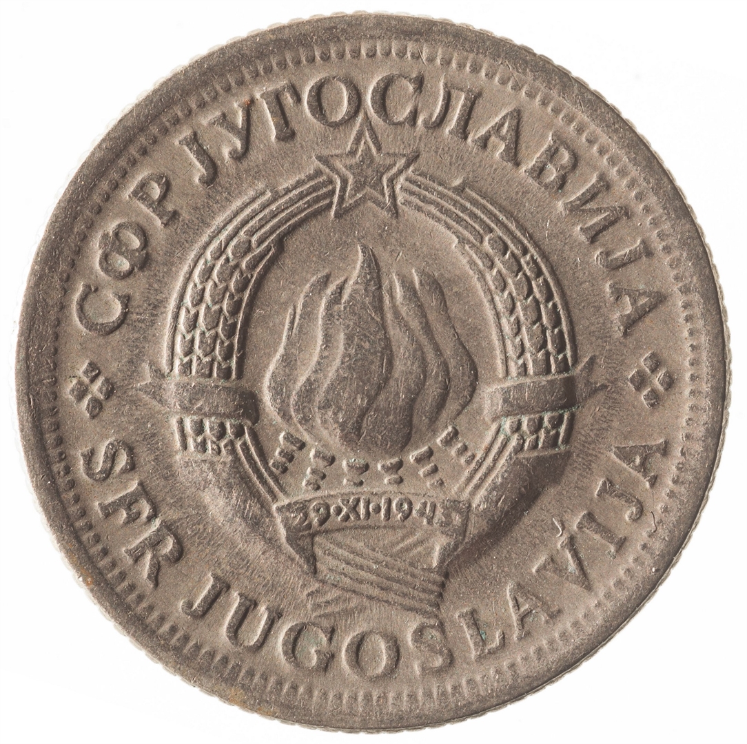 U sredini državni grb. U gornjem djelu uz rub polukružno napisan tekst SFR JUGOSLAVIJA na latinici i ćirilici.
