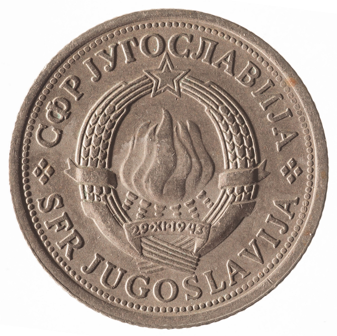 U sredini državni grb. U gornjem djelu uz rub polukružno napisan tekst SFR JUGOSLAVIJA na latinici i ćirilici.