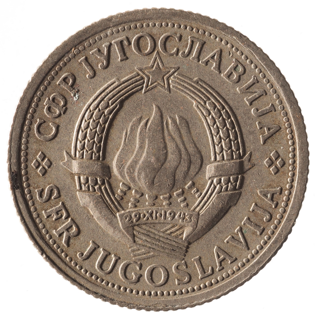 U sredini državni grb. U gornjem djelu uz rub polukružno napisan tekst SFR JUGOSLAVIJA na latinici i ćirilici.