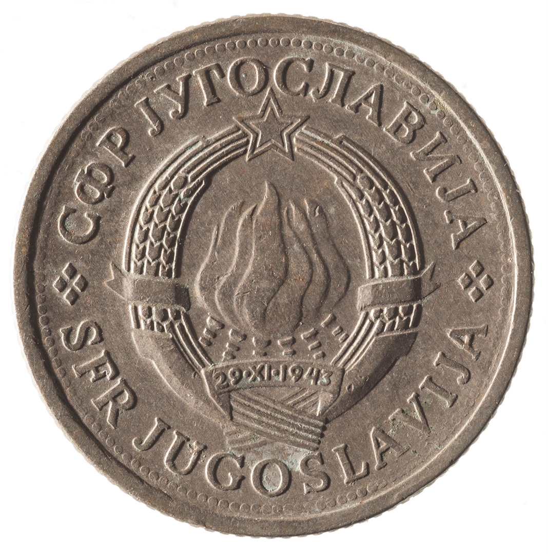 U sredini državni grb. U gornjem djelu uz rub polukružno napisan tekst SFR JUGOSLAVIJA na latinici i ćirilici.