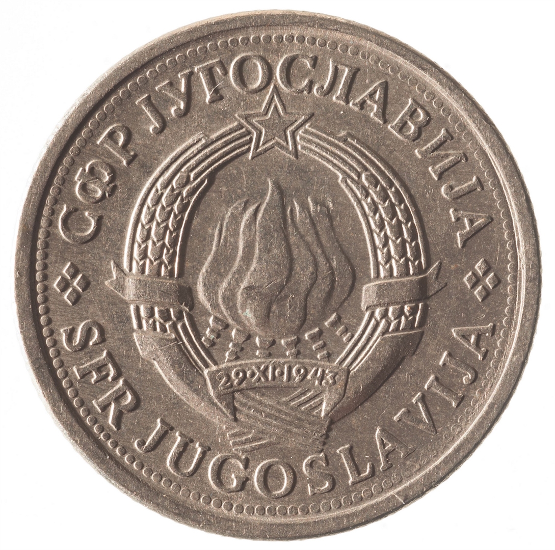 U sredini državni grb. U gornjem djelu uz rub polukružno napisan tekst SFR JUGOSLAVIJA na latinici i ćirilici.