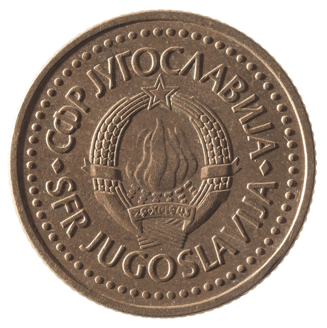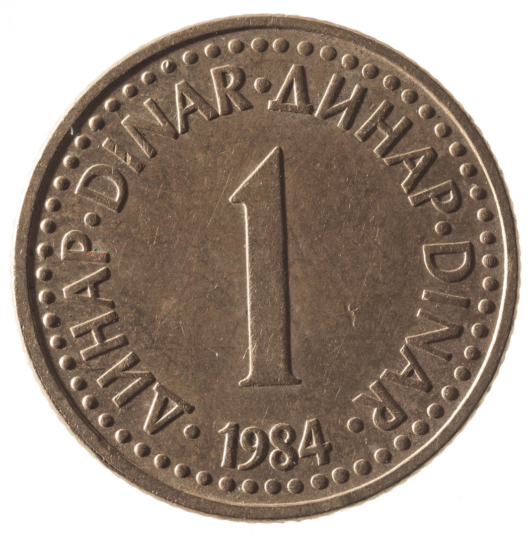 Avers: U sredini državni grb. U gornjem djelu uz rub polukružno napisan tekst SFR JUGOSLAVIJA na latinici i ćirilici. Revers: U sredini broj 1 (nominala), oko njega tekst DINAR na četiri jezika, a ispod toga godina 1984.