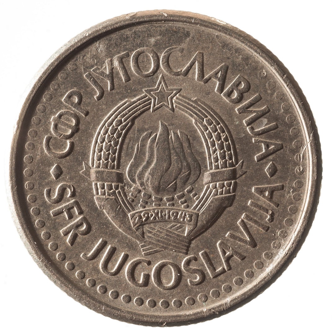 U sredini državni grb. U gornjem djelu uz rub polukružno napisan tekst SFR JUGOSLAVIJA na latinici i ćirilici.