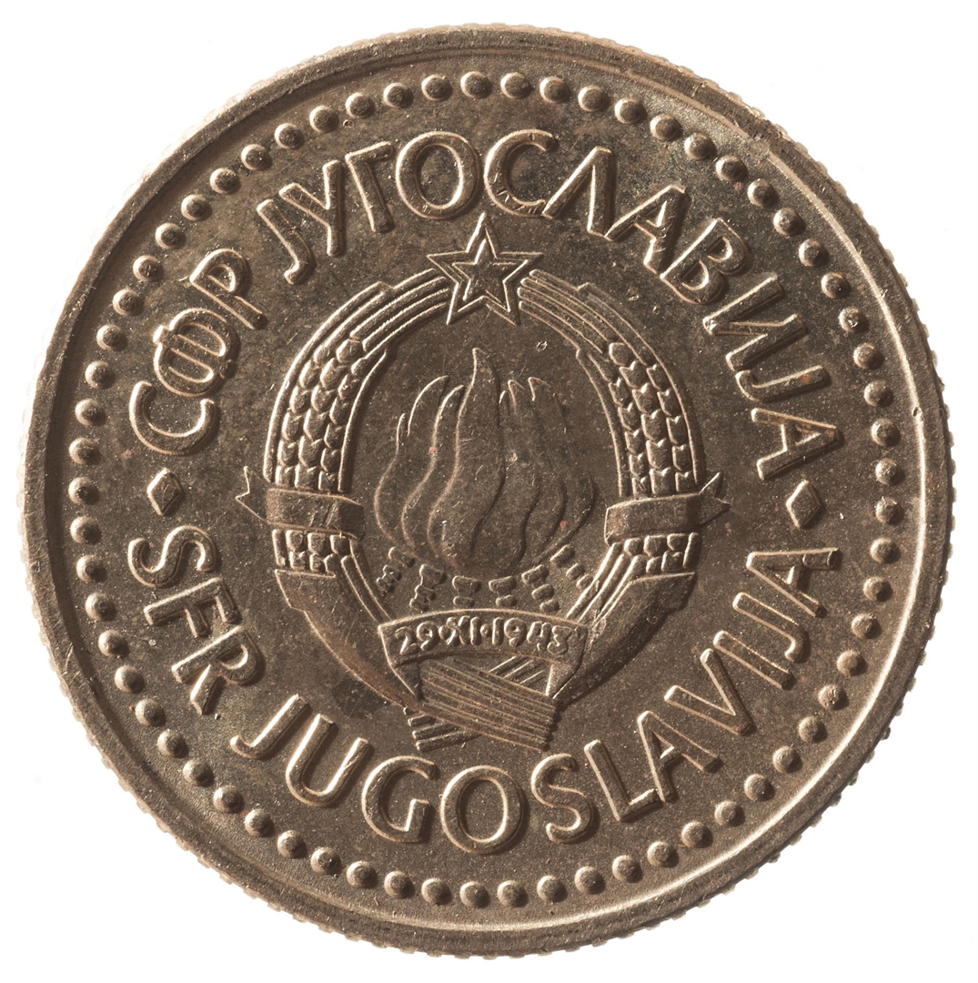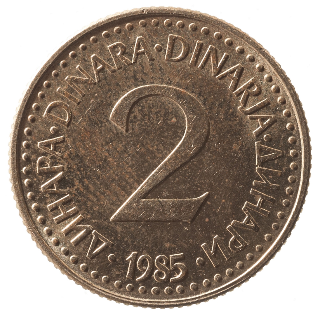 Avers: U sredini državni grb. U gornjem djelu uz rub polukružno napisan tekst SFR JUGOSLAVIJA na latinici i ćirilici. Revers: U sredini broj 2 (nominala), oko njega tekst DINAR na četiri jezika, a ispod toga godina 1985.