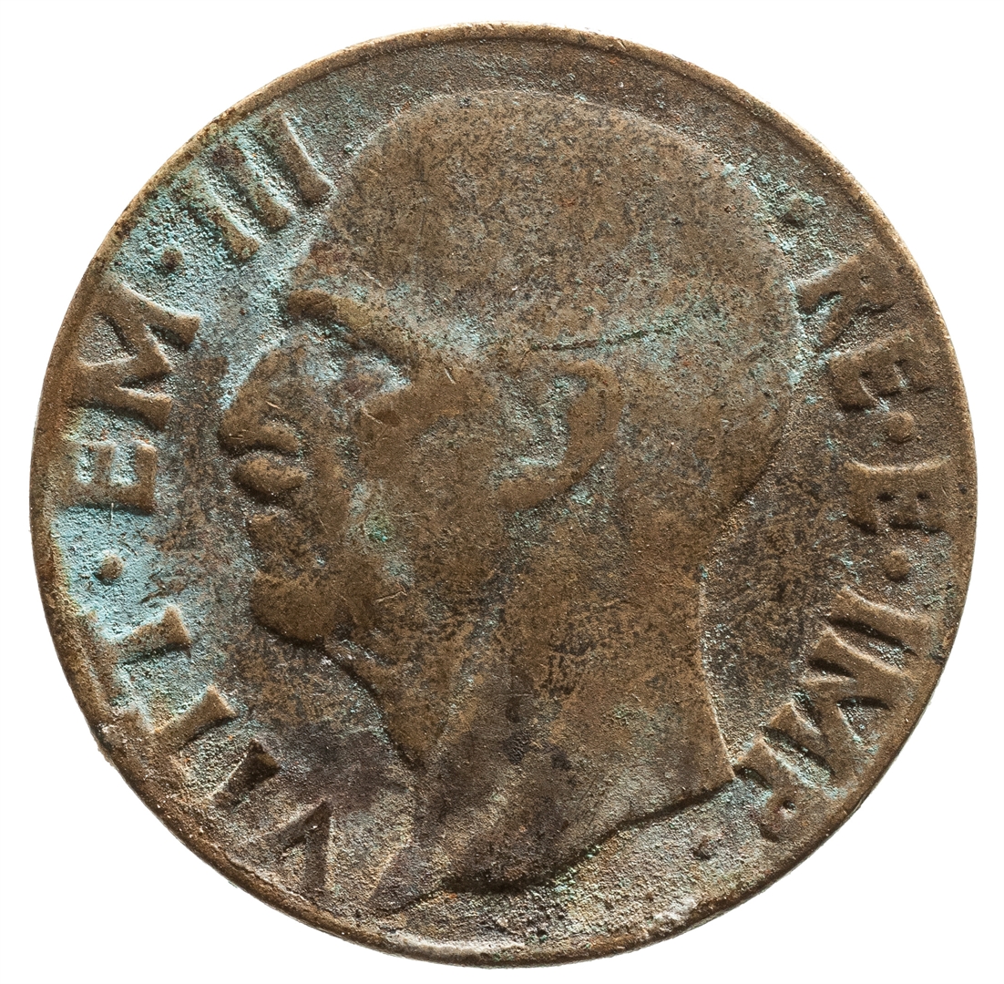 Centralni dio kovanice zauzima profil osobe sa pogledom u lijevo. Kružno uz rub kovanice proteže se natpis VITT. EMAN. III. RE. E. IMP.