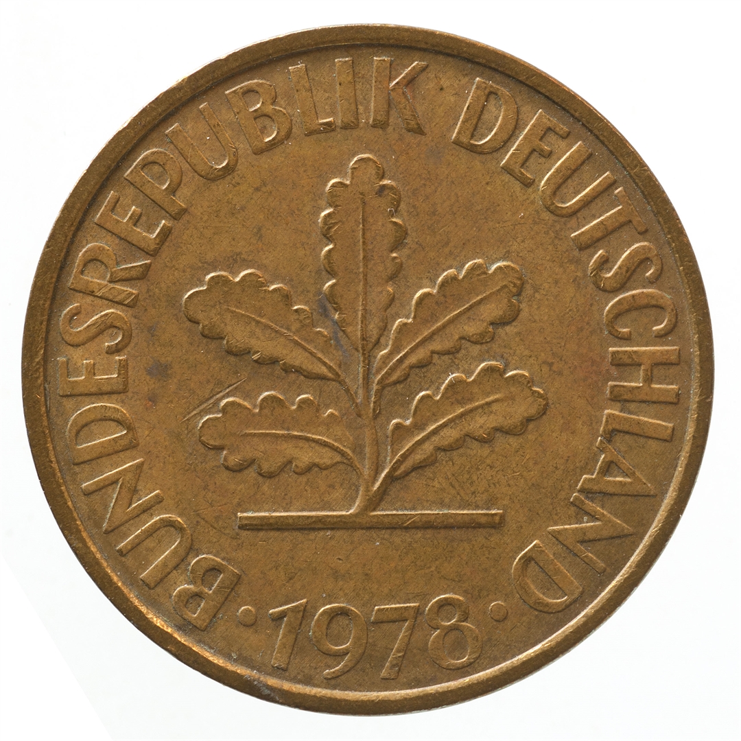 U sredini mladica hrasta s pet listova u vodoravnoj liniji. Uz rub ispisan tekst BUNDESREPUBLIK DEUTSCHLAND i godina 1978.