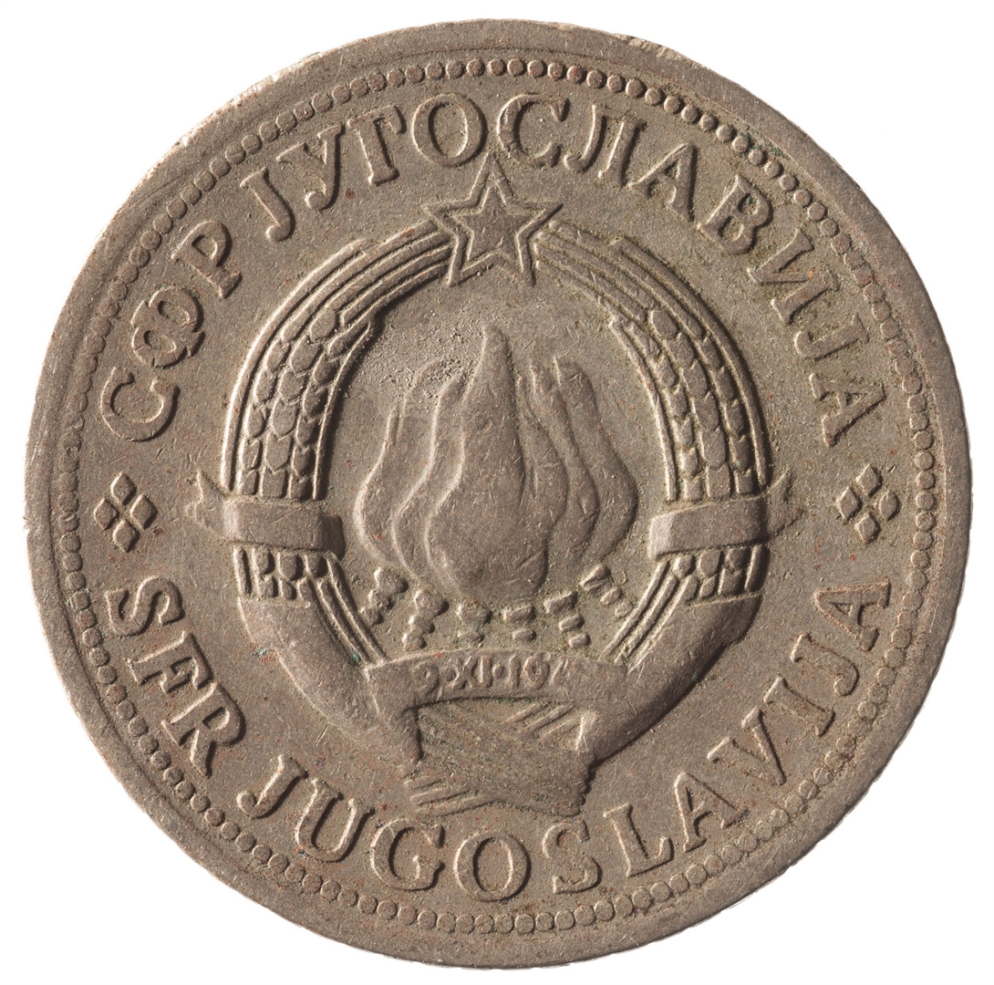 U sredini državni grb. U oko njega uz rub polukružno napisan tekst SFR JUGOSLAVIJA na latinici i ćirilici.
