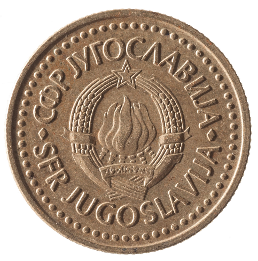 U sredini državni grb. U gornjem djelu uz rub polukružno napisan tekst SFR JUGOSLAVIJA na latinici i ćirilici.