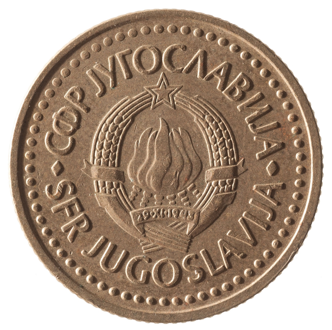 U sredini državni grb. U gornjem djelu uz rub polukružno napisan tekst SFR JUGOSLAVIJA na latinici i ćirilici.
