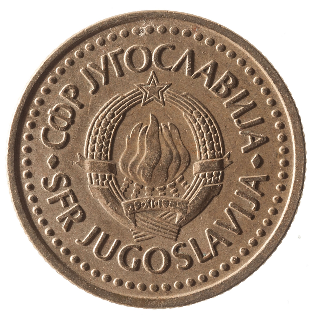 U sredini državni grb. U gornjem djelu uz rub polukružno napisan tekst SFR JUGOSLAVIJA na latinici i ćirilici.