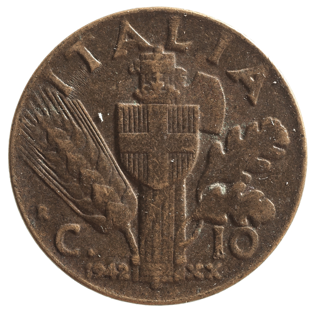 Avers: Centralni dio kovanice zauzima profil osobe sa pogledom u lijevo.Kružno uz rub kovanice proteže se natpis VITT. EMAN. III. RE. E. IMP. Revers: Centralno mjesto na kovanici zauzima fascio sa grbom. Iznad njega polukružno uz rub nalazi se natpis ITALIA, sa njegove lijeve strane smjestio se klas žita, a sa desne dva hrastova lista. Na dnu sa lijeve strane fascia nalazi se godina 1942., a sa njegove desne strane rimski broj XX.
