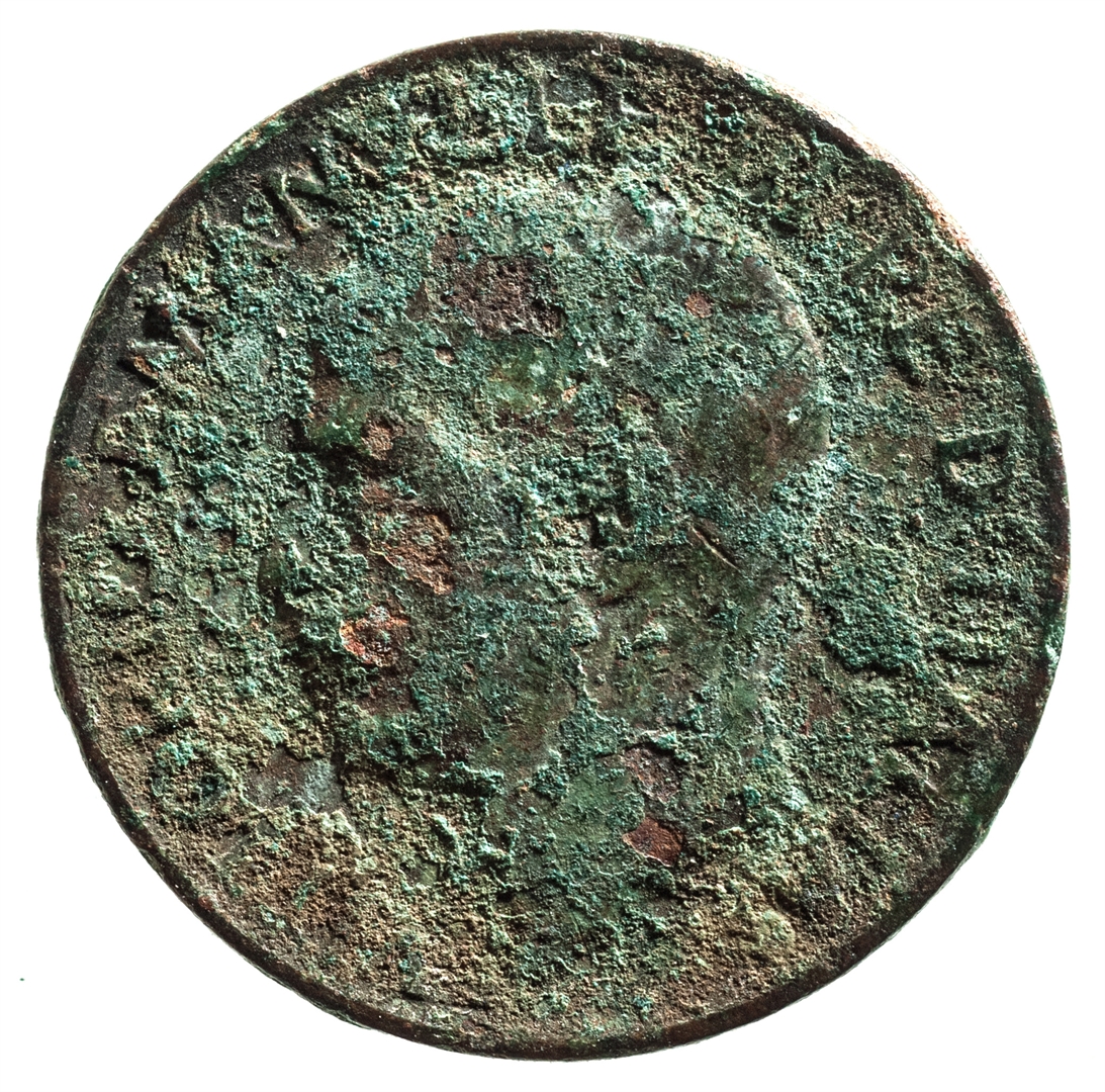 Centralni dio kovanice zauzima profil muške osobe sa pogledom u lijevo. Kružno uz rub kovanice proteže se natpis VITTORIO. EMANUELE. III. RE. D''ITALIA. Na dnu uz rub kovanice nalazi se natpis A. MOTTI.