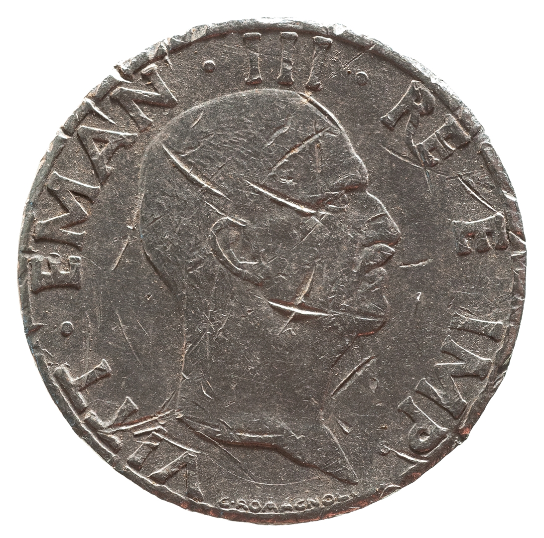 Centralni dio kovanice zauzima profil muške osobe sa pogledom u desno. Kružno uz rub kovanice proteže se natpis VITT. EMAN. III. RE. E. IMP.. Na dnu uz rub nalazi se natpis G.ROMAGNOLI.