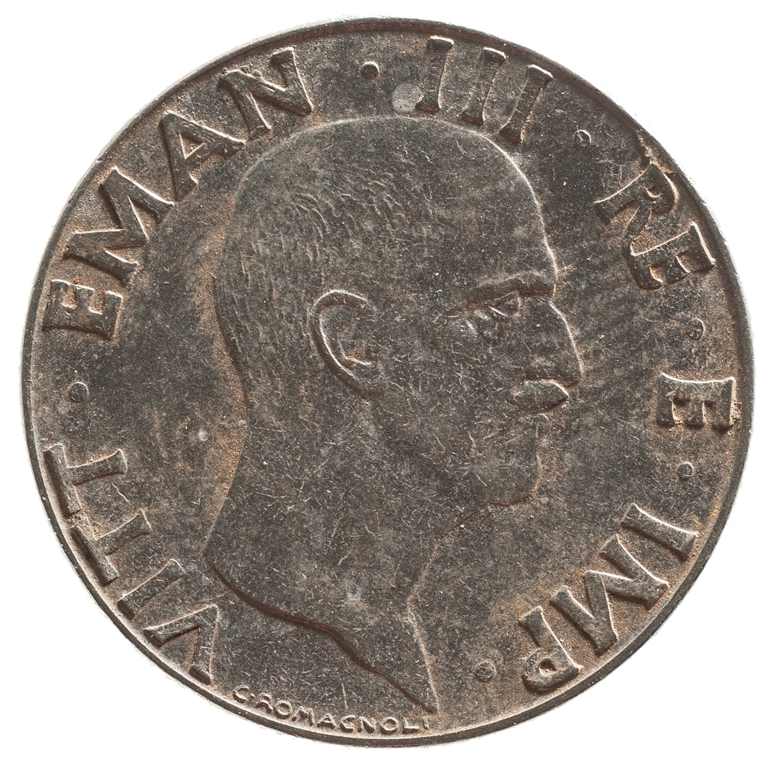 Centralni dio kovanice zauzima profil muške osobe sa pogledom u desno. Kružno uz rub kovanice proteže se natpis VITT. EMAN. III. RE. E. IMP.. Na dnu uz rub nalazi se natpis G.ROMAGNOLI.