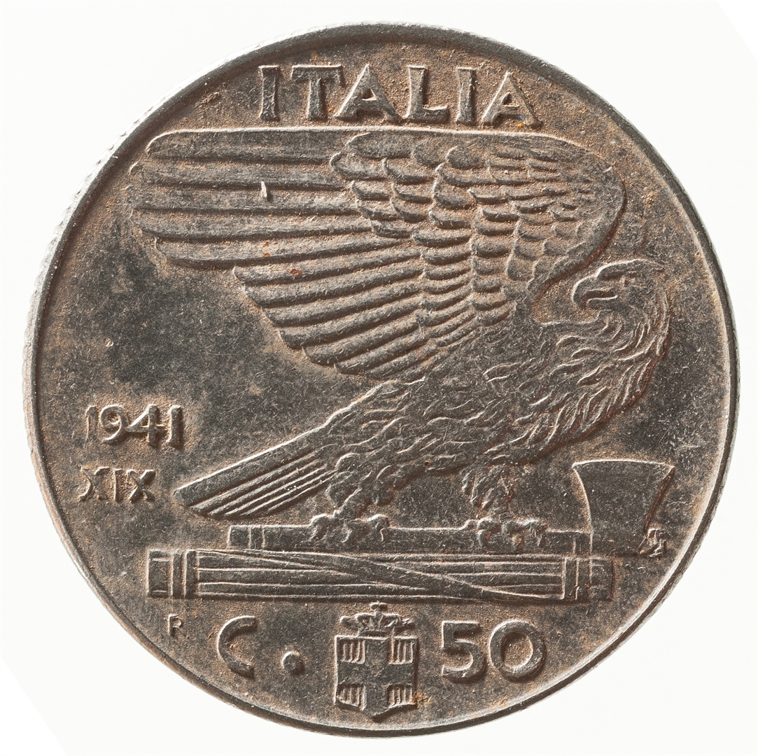 Centralni dio reversa zauzima prikaz orla raširenih krila koji u kanđama drži fascio. Iznad njega nalazi se natpis ITALIA, a sa njegove desne strane godina 1941 i rimski broj XIX. U dnu na sredini nalazi se grb s čije se desne strane nalazi broj 50, a sa lijeve strane slovo C. Lijevo od slova C nalazi se malo slovo R.