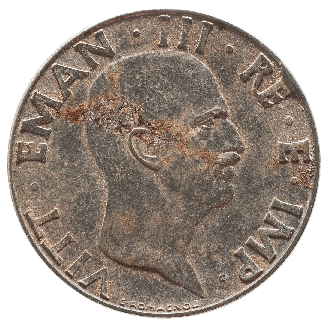 Centralni dio kovanice zauzima profil muške osobe sa pogledom u desno. Kružno uz rub kovanice proteže se natpis VITT. EMAN. III. RE. E. IMP.. Na dnu uz rub nalazi se natpis G.ROMAGNOLI.