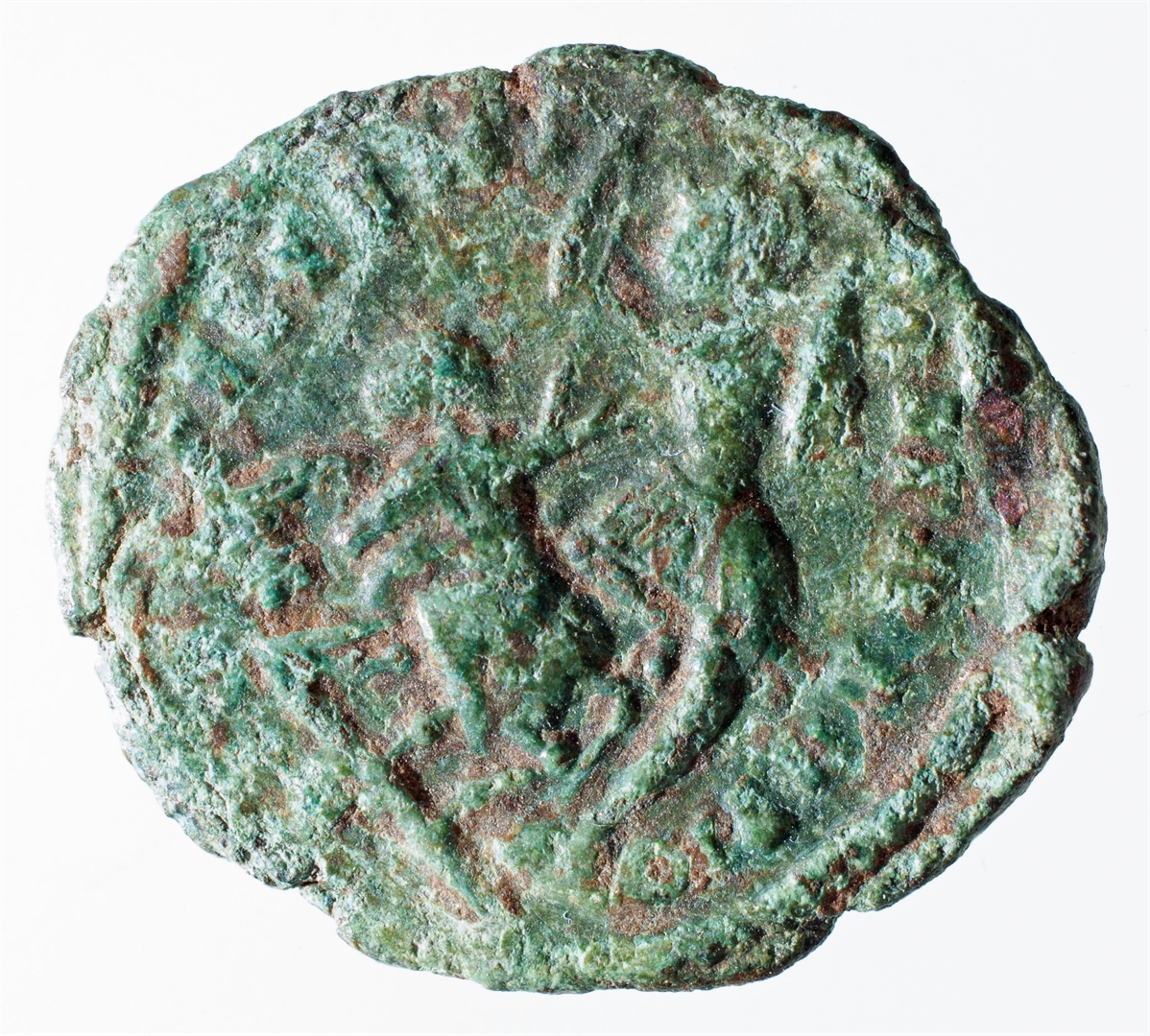 Revers: FELTEMPRE PARATIO Car stoji nalijevo i nogom gazi konja na kojem jaše neprijatelj. Desnicom ga probada kopljem, a ljevicom drži štit. Neprijatelj ljevicom drži konja oko vrata a desnicu drži uvis u obranu.