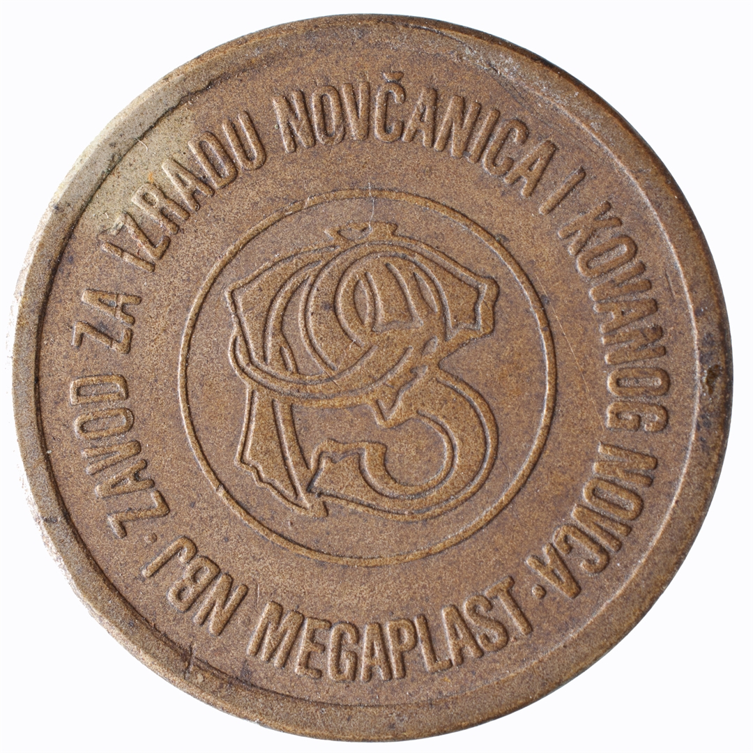 Avers: U centralnom djelu logo pošte, a uz rub natpis JUGOSLAVIJA A JUGOSLAVIJA (na ćirilici. Revers: U središnjem djelu nalaze se isprepletena slova PŠ. Uz rub se nalazi kružni natpis NBJ ZAVOD ZA IZRADU NOVČANICA I KOVANOG NOVCA: MEGAPLAST.