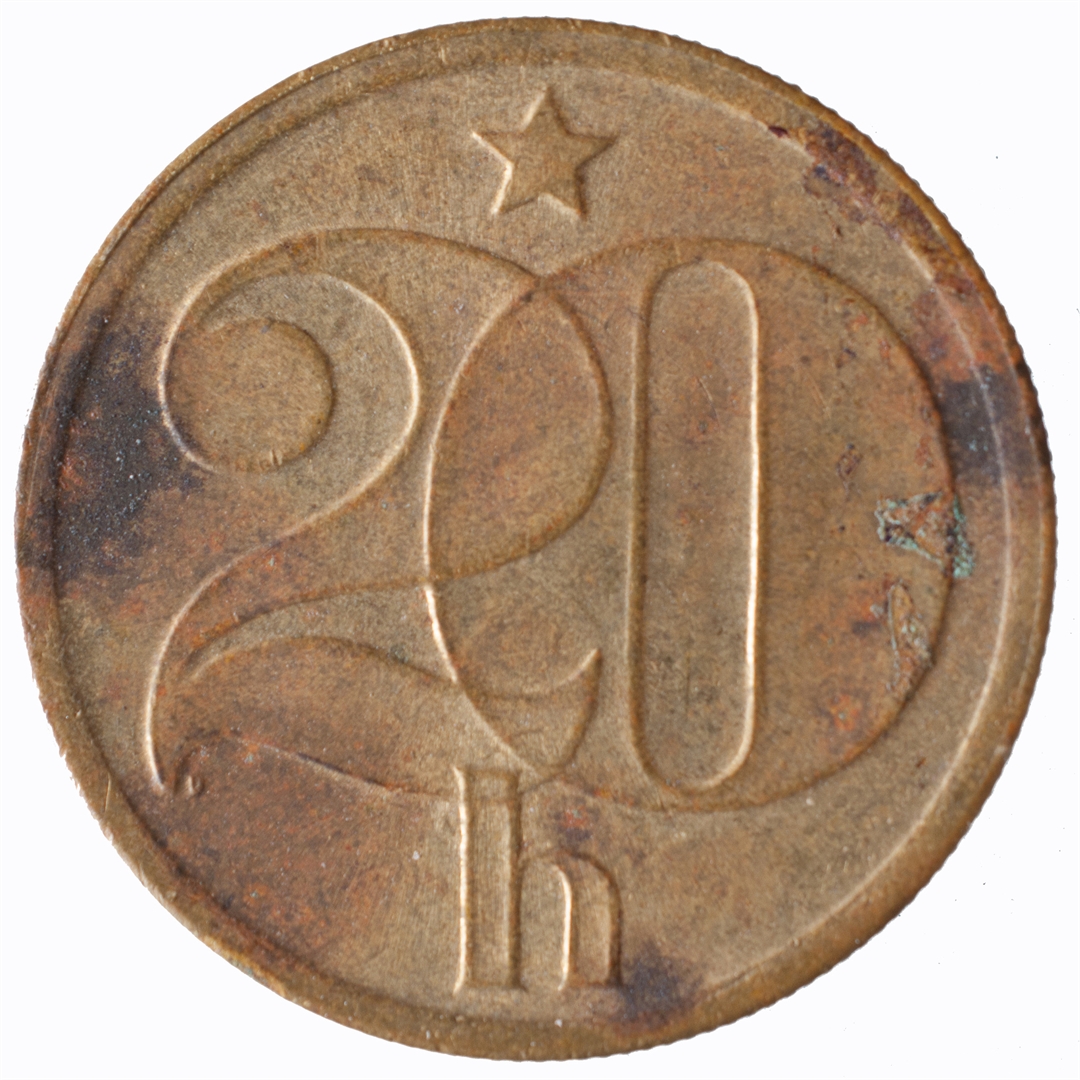 Avers: Središnji dio zauzima državni grb ispod kojeg se nalazi godina kovanja. Kružno uz rub nalazi se natpis ČESKOSLOVENSKÁ SOCIALISTICKÁ REPUBLIKA. Revers: Na središnjem djelu nalazi se nominala. Iznad njega nalazi se zvjezda petokraka a ispod slovo h.