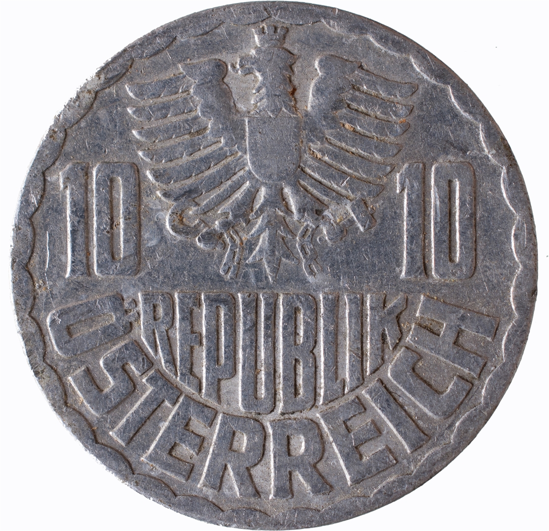 Avers: Pri vrhu državni grb Austrije, a pored njega nominala. U donjem djelu tekst REPUBLIK ''O''STERREICH.