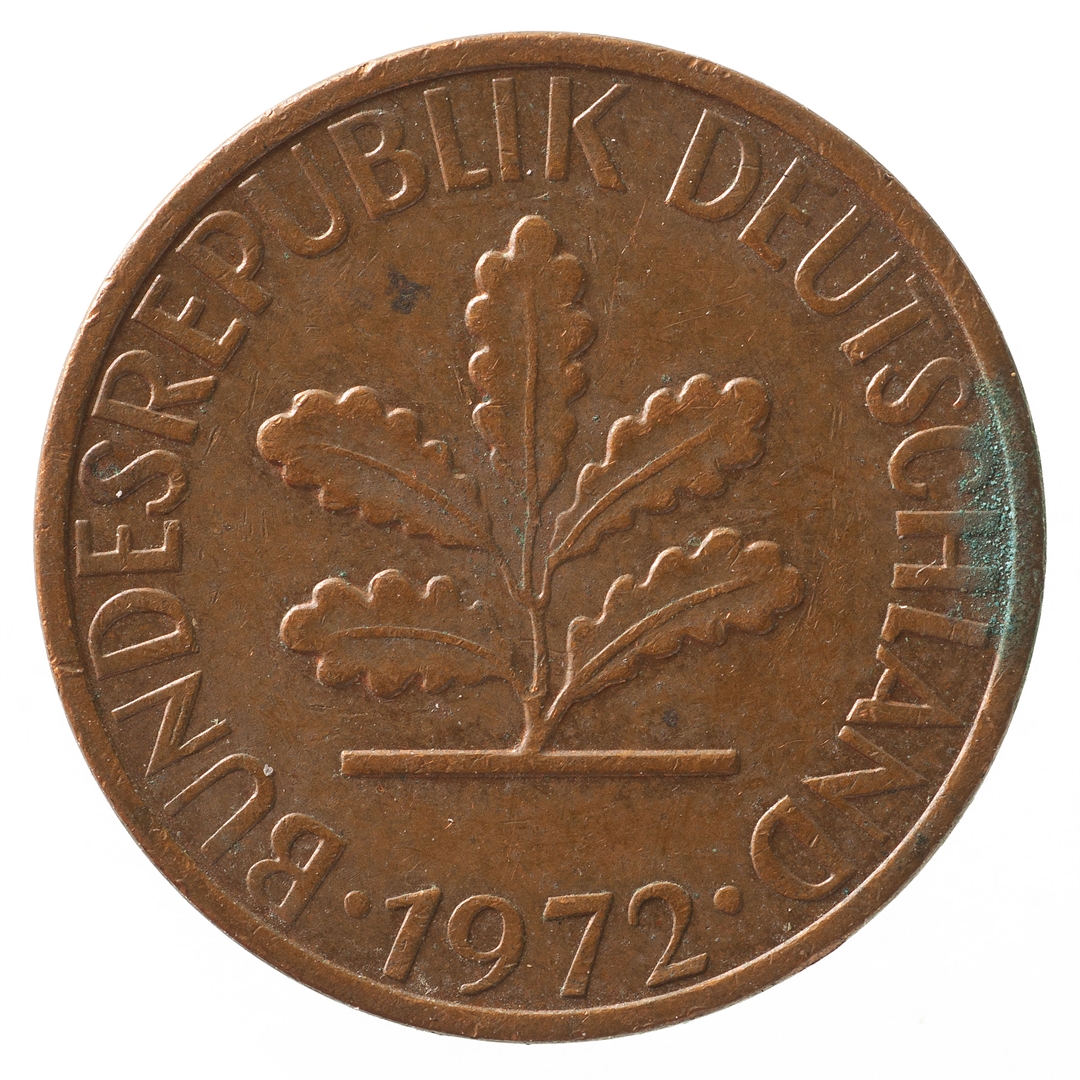 U sredini mladica hrasta s pet listova u vodoravnoj liniji. Uz rub ispisan tekst BUNDESREPUBLIK DEUTSCHLAND i godina 1972.