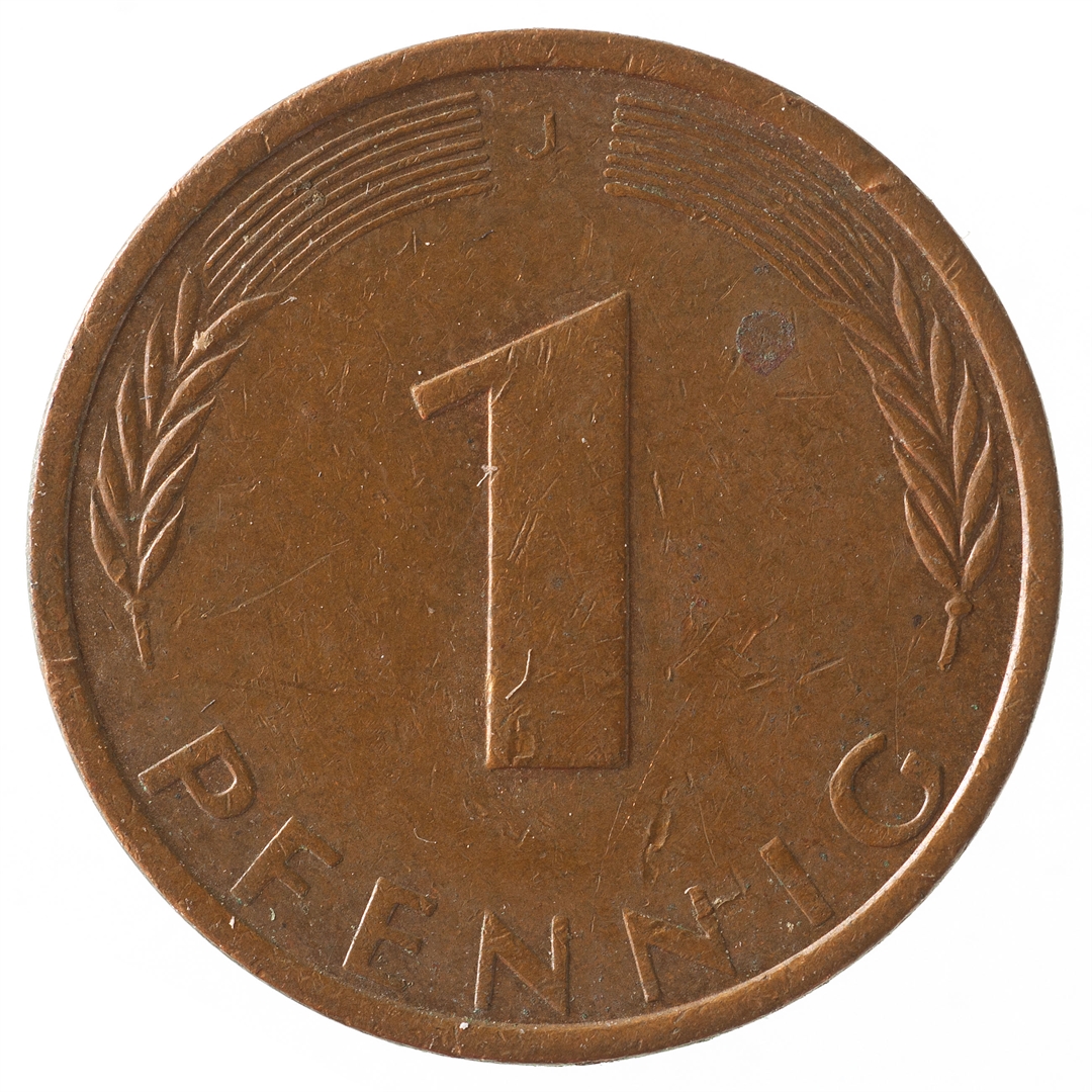 U sredini broj 1. Na vrhu slovo J (oznaka kovnice), a uz donji rub riječ PFENNIG.