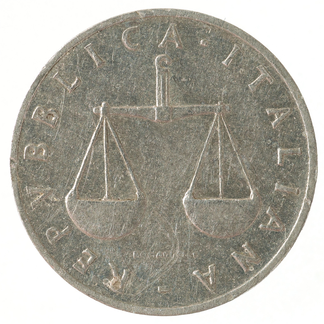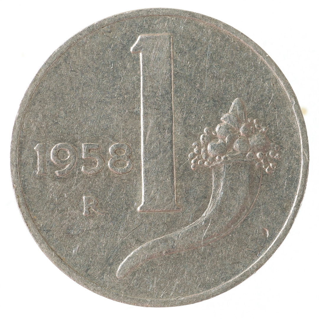 Avers: U sredini vaga. Kružno uz rub natpis REPUBLICA ITALIANA. U sredini ispod vage tekst ROMAGNOLI. Revers: U sredini veliki broj 1. Sa njegove lijeve strane godina 1958, a ispod nje slovo R. Sa desne strane rog obilja.