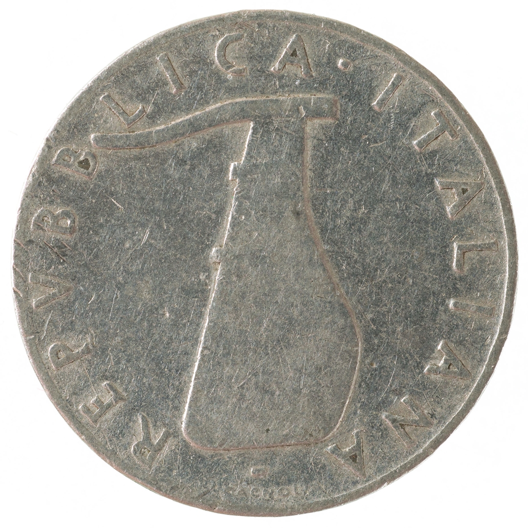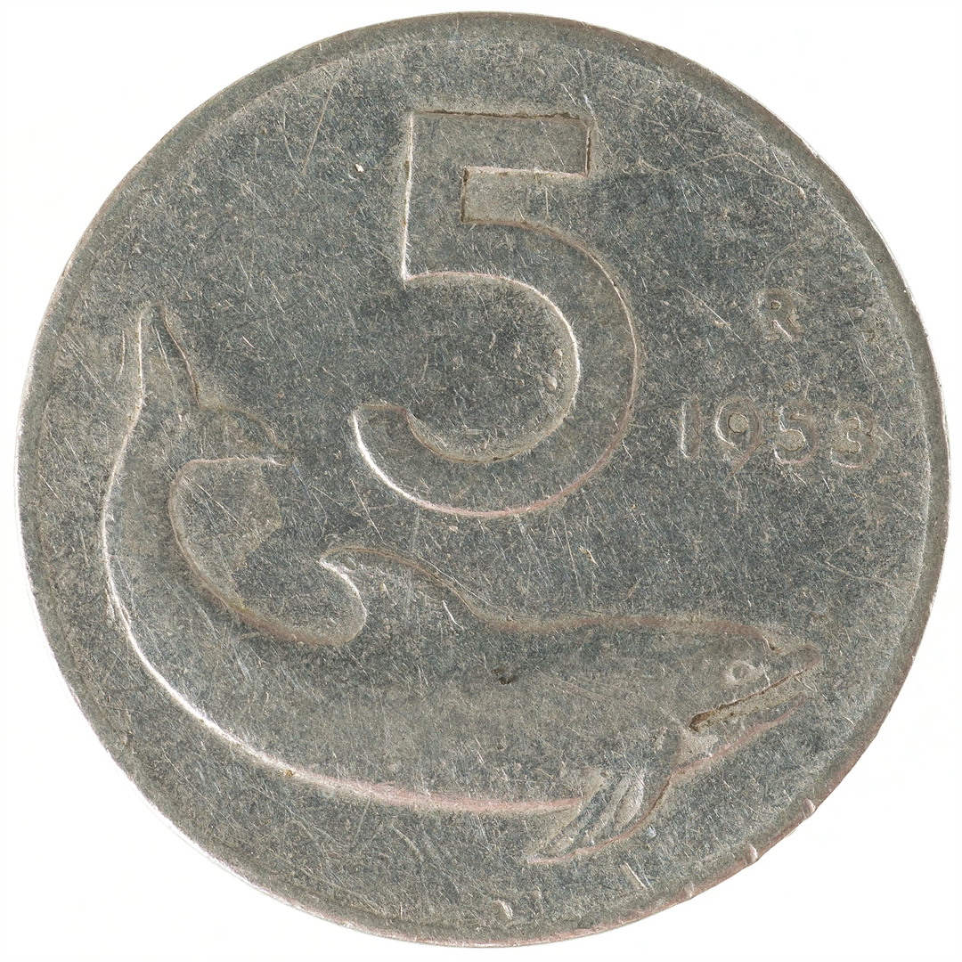 Avers: U sredini kormilo a uz rub tekst REPVBBLICA · ITALIANA. Na dnu uz rub tekst ROMAGNOLI. Revers: U gornjem djelu veliki broj 5 ispod kojeg se nalazi prikaz delfina. Na desnoj strani slovo P ispod kojeg se nalazi godina kovanja.