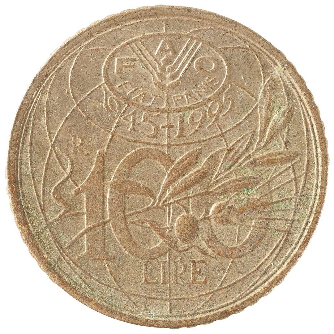Avers: U sredini ženski profil sa pogledom u lijevo i krunom na vrhu glave. Kosa je umotana u tkaninu. Sa lijeve i desne strane tekst u dva djela REPUBLICA ITALIANA. Uz donji rub nalaze se dvije zvijezde i ime autora L CRETARA. Revers: U pozadini se nalazi planet Zemlja prikazana kroz paralele i meridijame. Na poziciji sjevernog pola nalazi se tekst FAO FIAT PANIS 1945-1995. U središnjem djelu nalazi se slovo R i tekst u dva reda 100 LIRE a preko toga maslinova grančica.