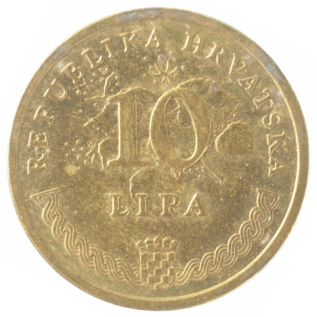 U središnjem dijelu nominala "10 LIPA", a u pozadini prikaz stilizirane grane lipe u cvatu. U gornjem polukrugu, uz rub, natpis "REPUBLIKA HRVATSKA". Uz donji rub, u središnjem dijelu, prikaz grba Republike Hrvatske od kojeg je lijevo i desno prikaz pleterne ornamentike.