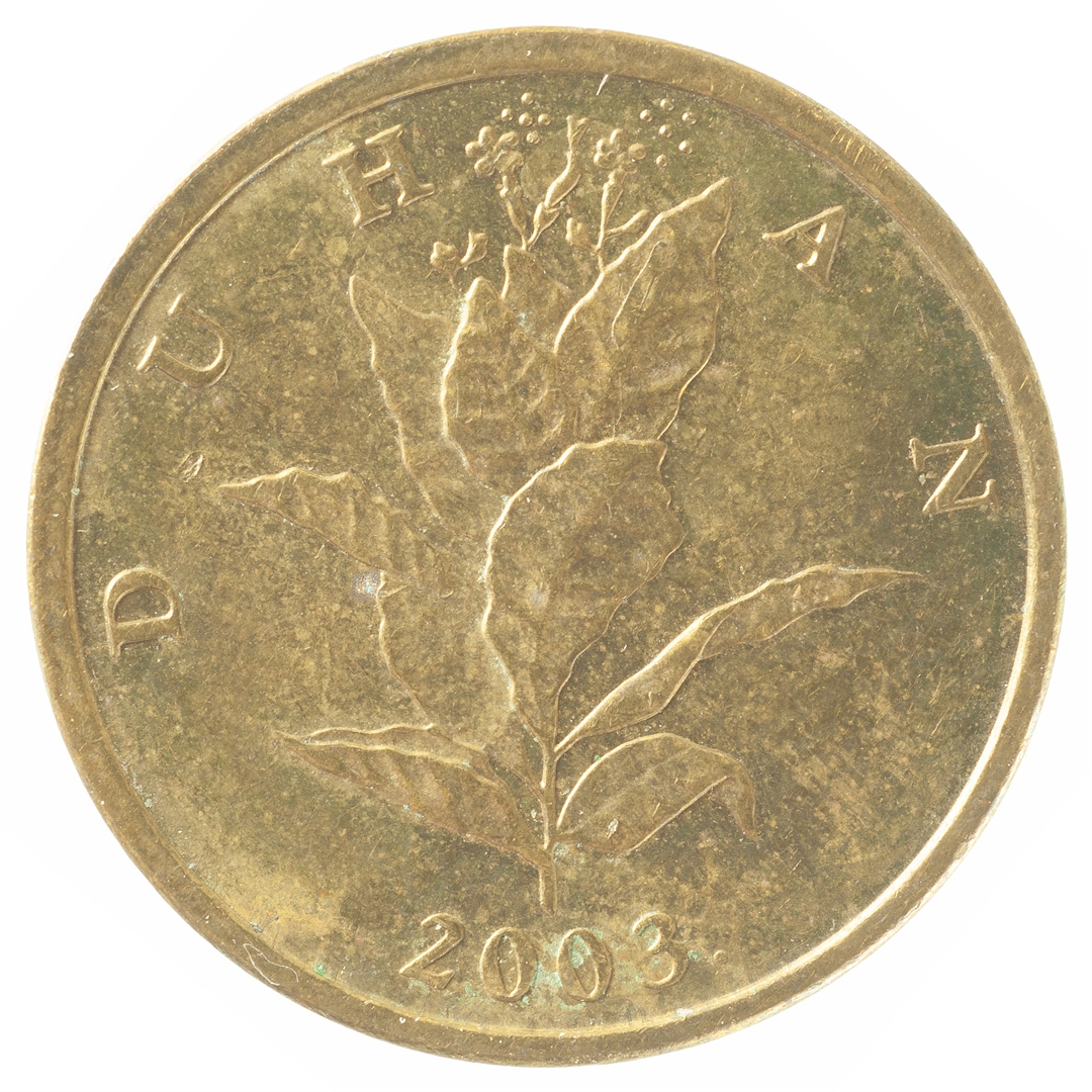U središnjem dijelu stilizirana stabljika duhana u cvatu. Iznad prikaza, kružno uz rub, natpis "DUHAN". Uz donji rub, u središnjem dijelu, godina kovanja.