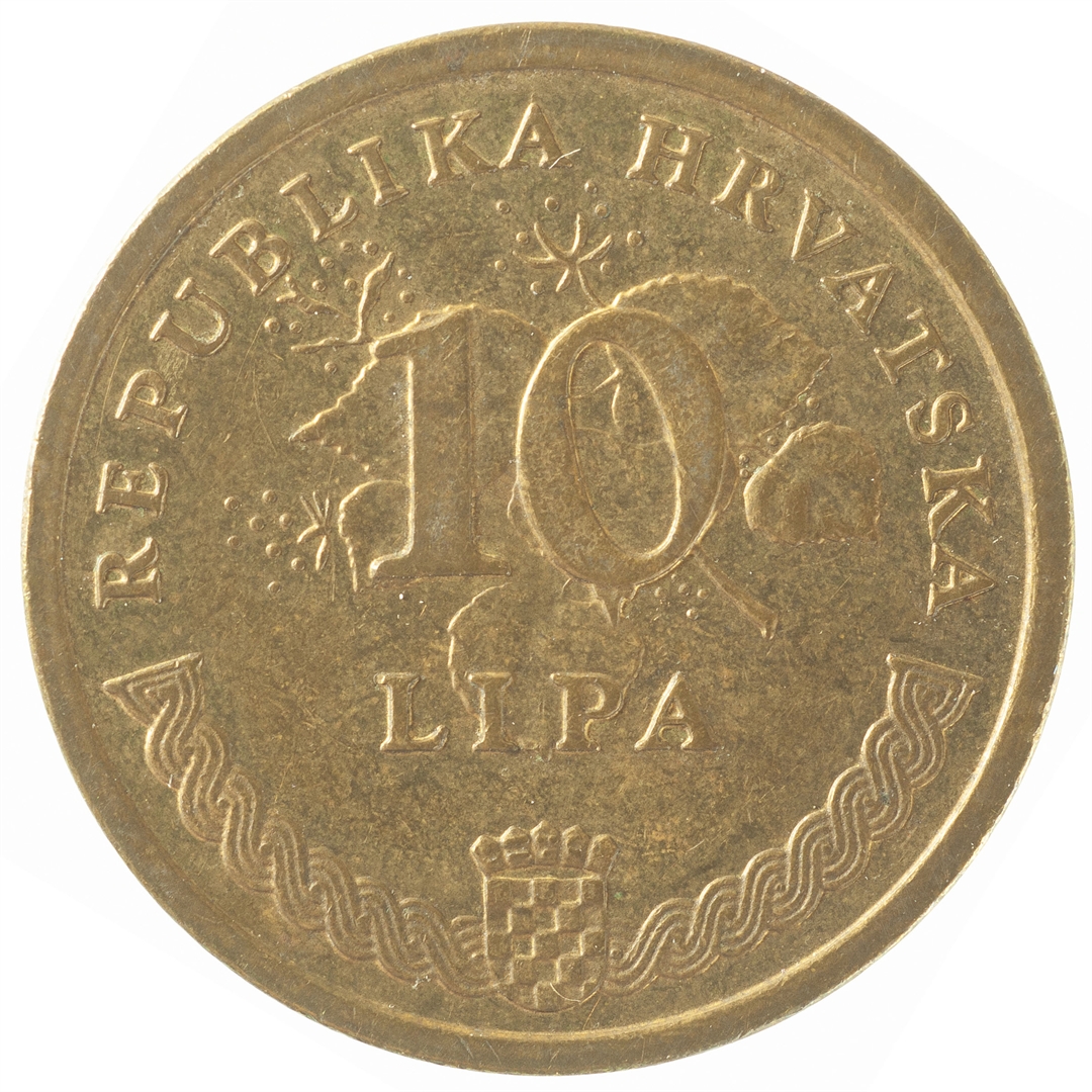 U središnjem dijelu nominala "10 LIPA", a u pozadini prikaz stilizirane grane lipe u cvatu. U gornjem polukrugu, uz rub, natpis "REPUBLIKA HRVATSKA". Uz donji rub, u središnjem dijelu, prikaz grba Republike Hrvatske od kojeg je lijevo i desno prikaz pleterne ornamentike.