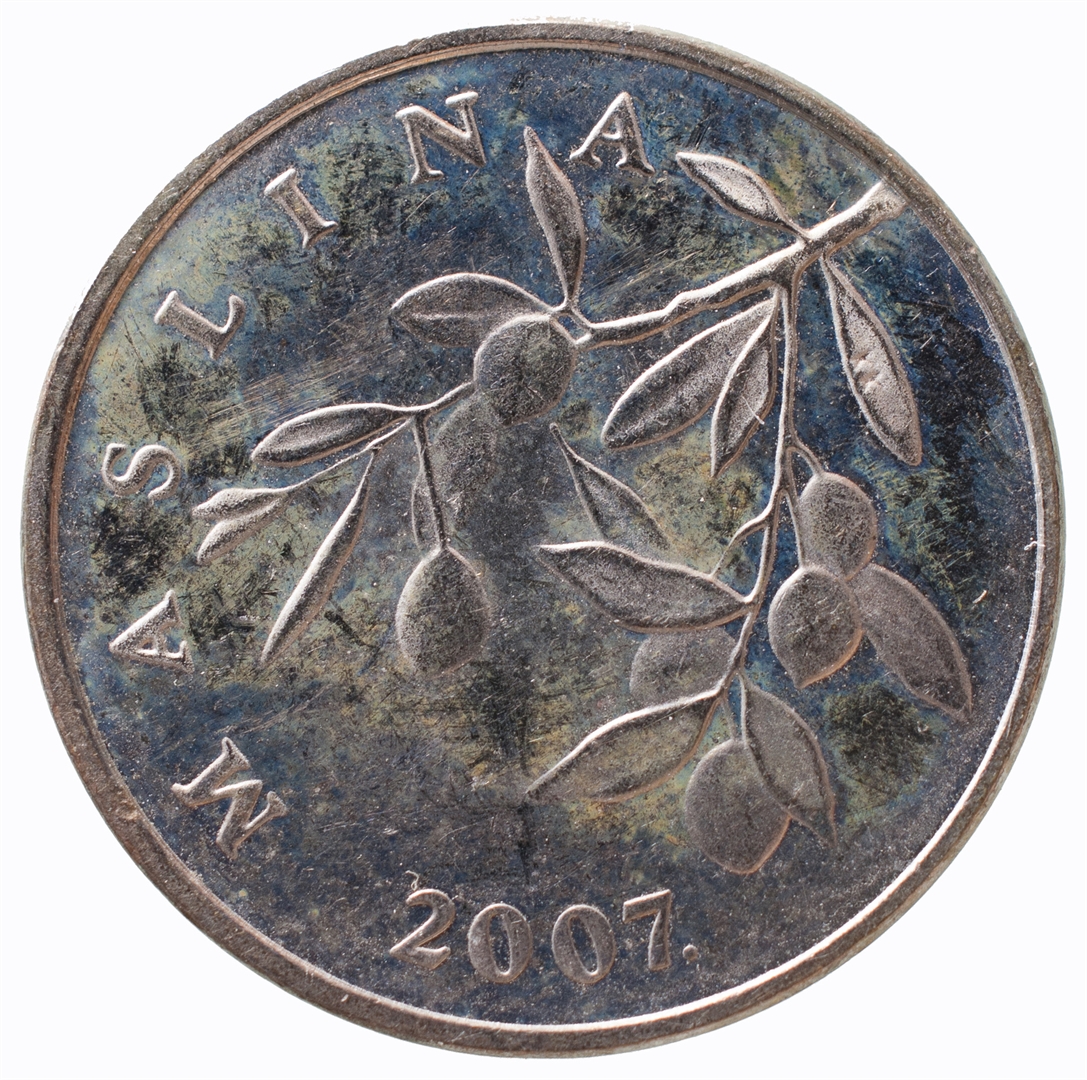 U središnjem dijelu stilizirana grana masline s plodovima. Polukružno, uz lijevi rub, natpis "MASLINA". Uz donji rub, u središnjem dijelu, godina kovanja.