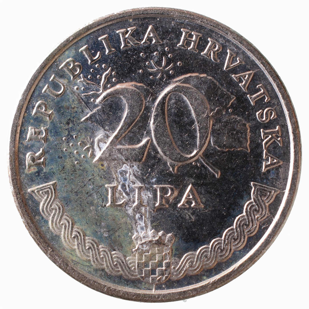 U središnjem dijelu nominala "20 LIPA", a u pozadini prikaz stilizirane grane lipe u cvatu. U gornjem polukrugu, uz rub, natpis "REPUBLIKA HRVATSKA". Uz donji rub, u središnjem dijelu, prikaz grba Republike Hrvatske od kojeg je lijevo i desno prikaz pleterne ornamentike.