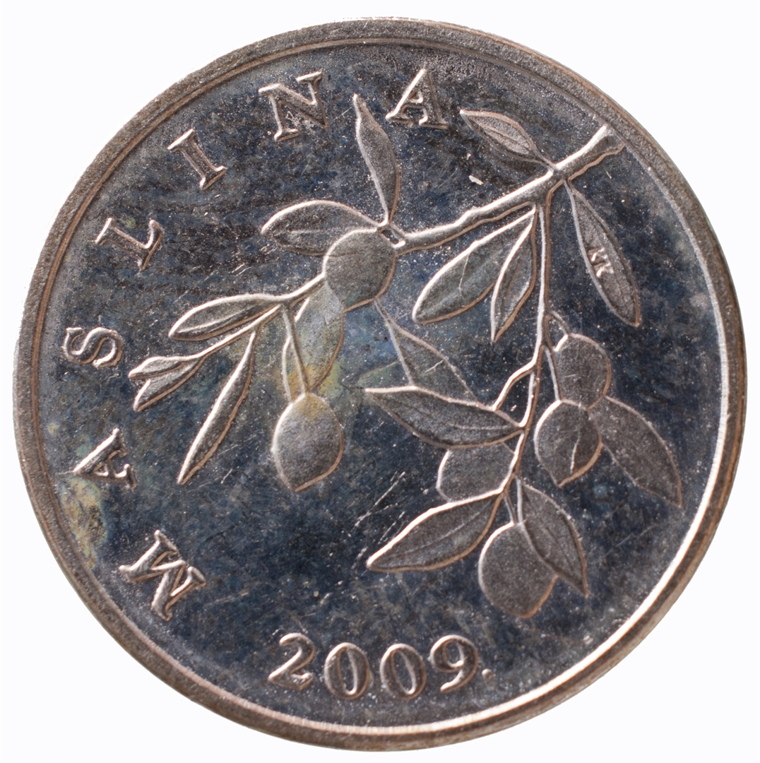 U središnjem dijelu stilizirana grana masline s plodovima. Polukružno, uz lijevi rub, natpis "MASLINA". Uz donji rub, u središnjem dijelu, godina kovanja.