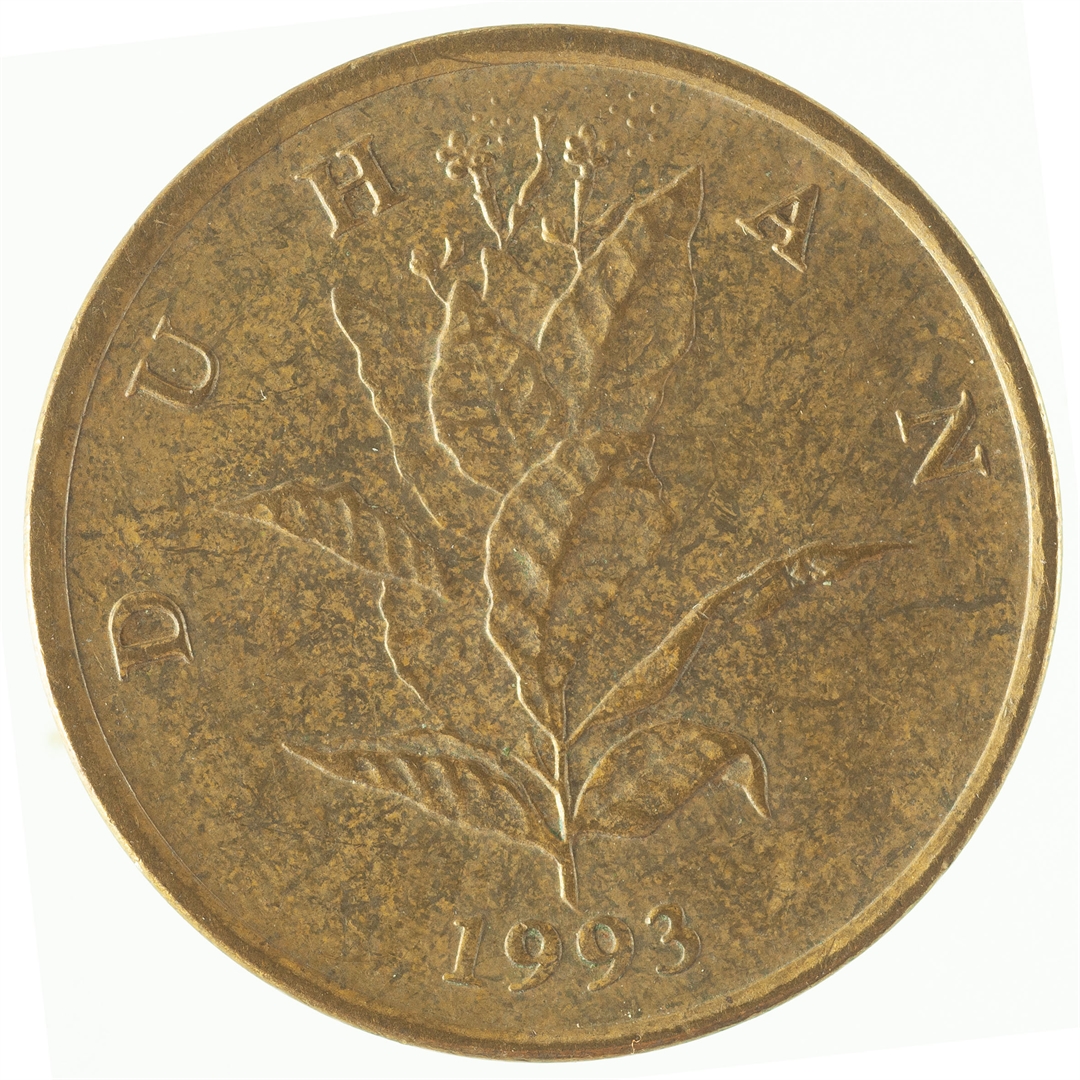 U središnjem dijelu stilizirana stabljika duhana u cvatu. Iznad prikaza, kružno uz rub, natpis "DUHAN". Uz donji rub, u središnjem dijelu, godina kovanja.