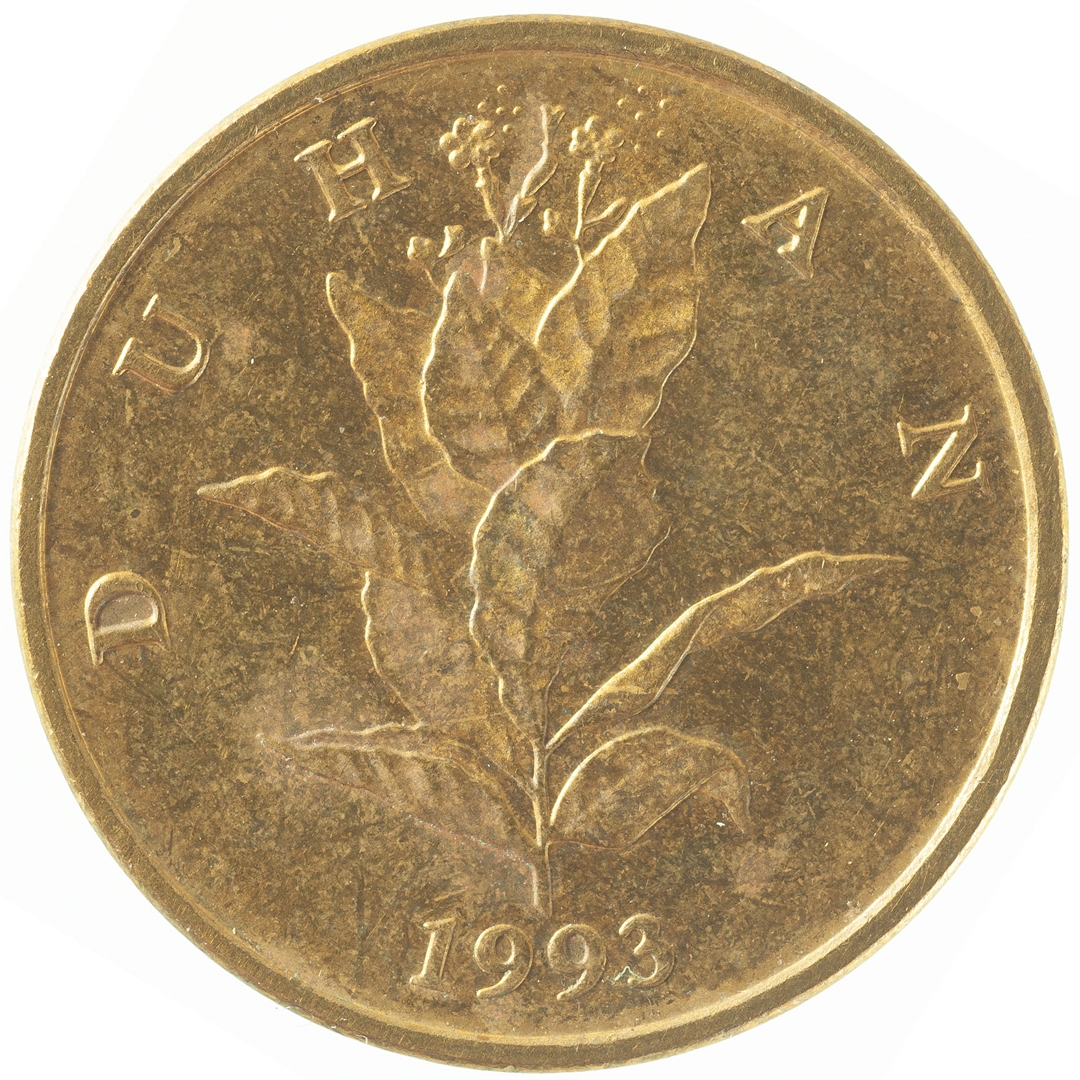 U središnjem dijelu stilizirana stabljika duhana u cvatu. Iznad prikaza, kružno uz rub, natpis "DUHAN". Uz donji rub, u središnjem dijelu, godina kovanja.